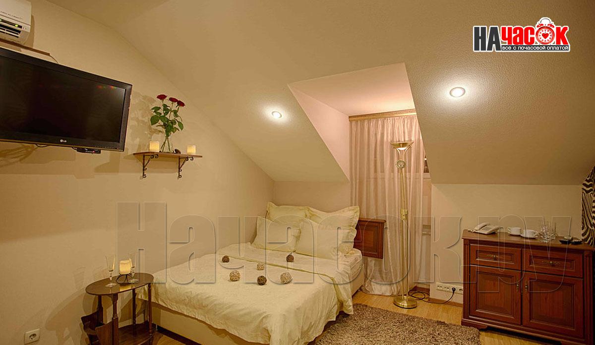 Светлый номер с собственной ванной комнатой, холодильником и телевизором с плоским экраном.
