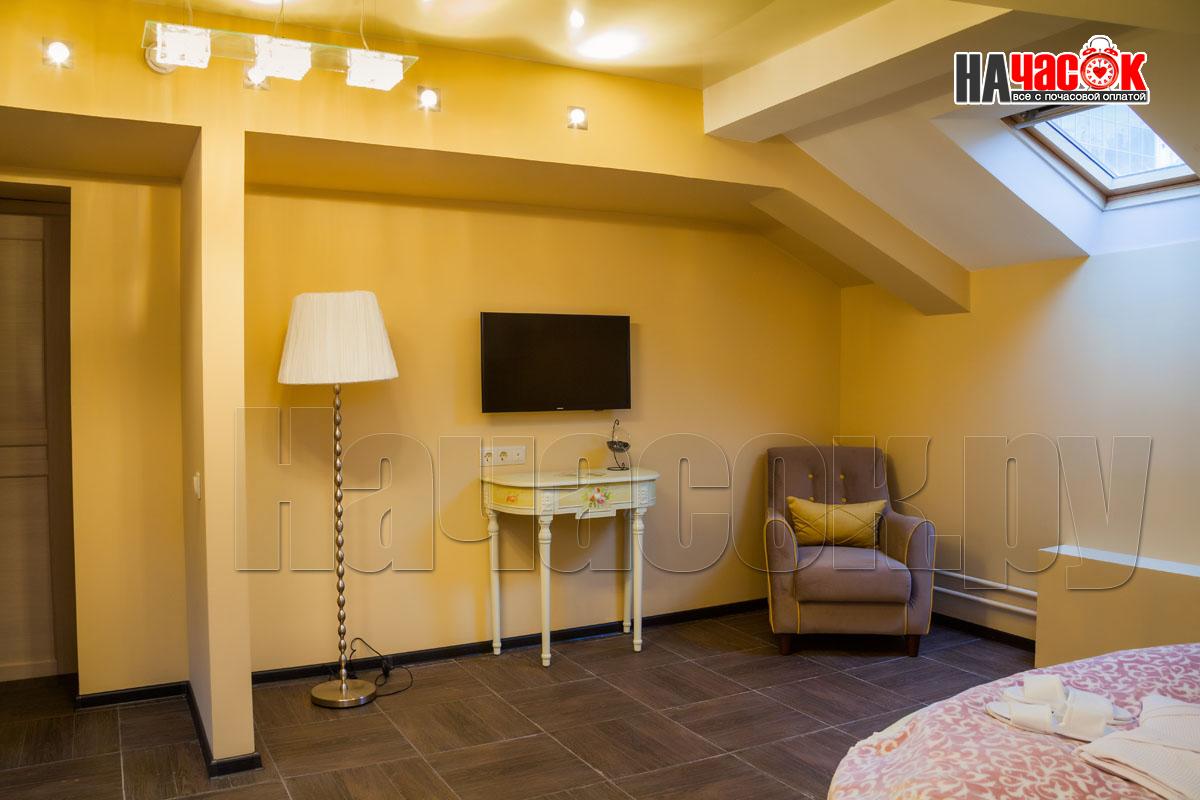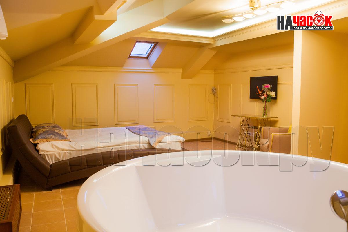 Двуспальная кровать Ортопедический матрас Подушки с гипоаллергенным наполнителем Одеяло с гипоаллергенным наполнителем Гипоаллергенное постельное белье (по запросу) Комплект полотенец Тумба прикроватная Стол письменный и стул Ванная комната с душевой кабиной или ванной Фен Зеркало Тапочки Халаты Спутниковое телевидение