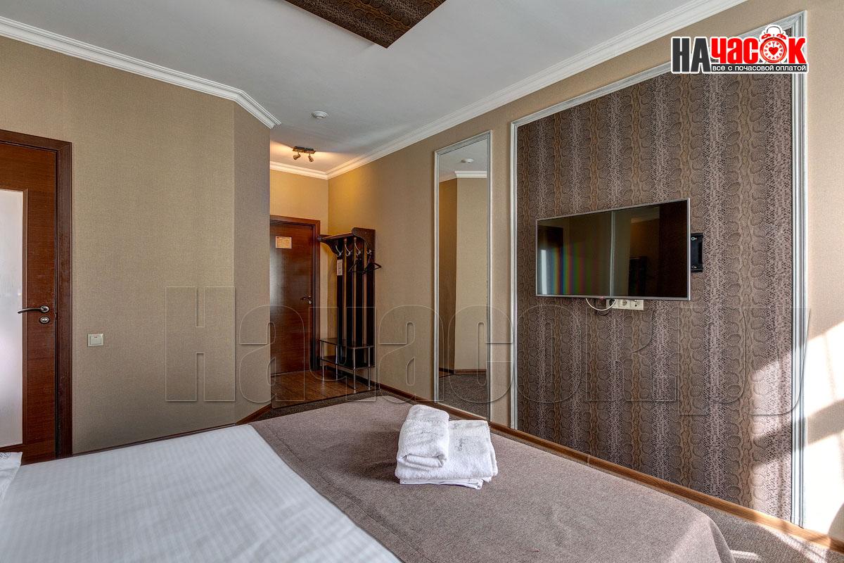 Номер данной категории более просторней эконома, в номере улучшенный дизайн. В номере большой плазменный телевизор, сплит система, большая двуспальная кровать, прикроватные тумбочки, бра. Зона отдыха, состоящая из двух кресел и стола. Санузел с душевой кабиной, туалетные и ванные принадлежности. |