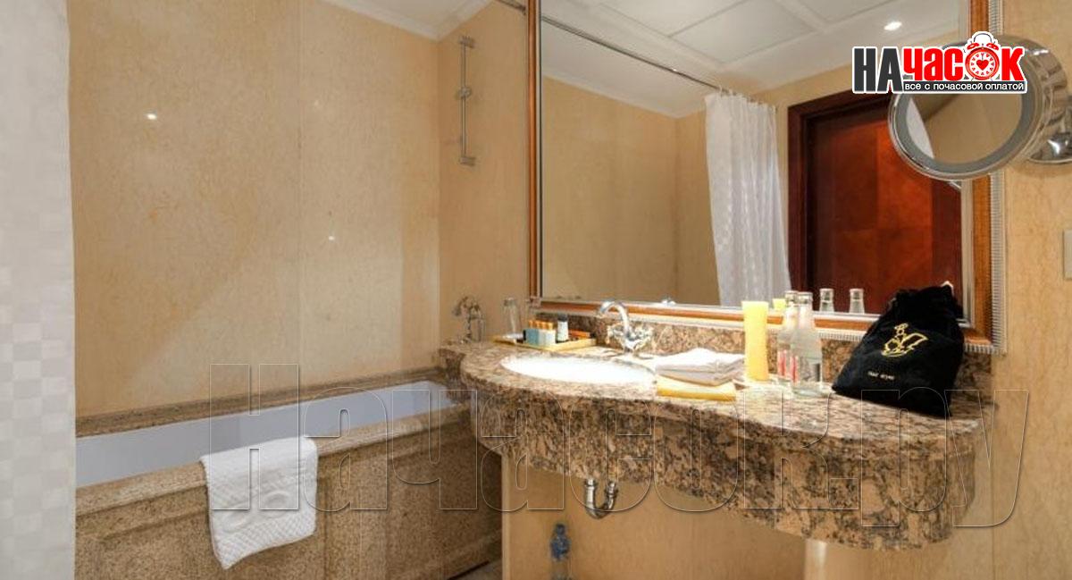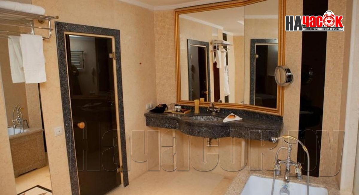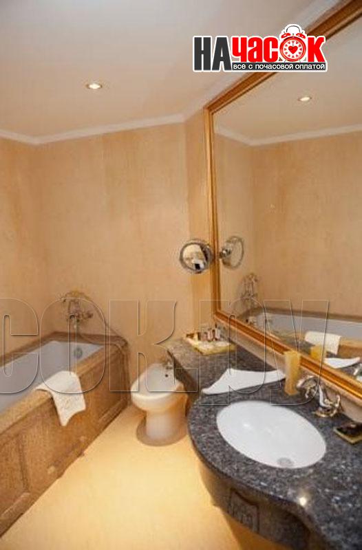 Просторный и комфортабельный номер от 60 кв.м. В спальне большая двуспальная кровать с роскошными постельными принадлежностями. Номера оборудованы всем необходимым для комфортного отдыха. В ванной комнате, декорированной зеркалами, предоставляется фен, тапочки, халат и бесплатные туалетно-косметические принадлежности.