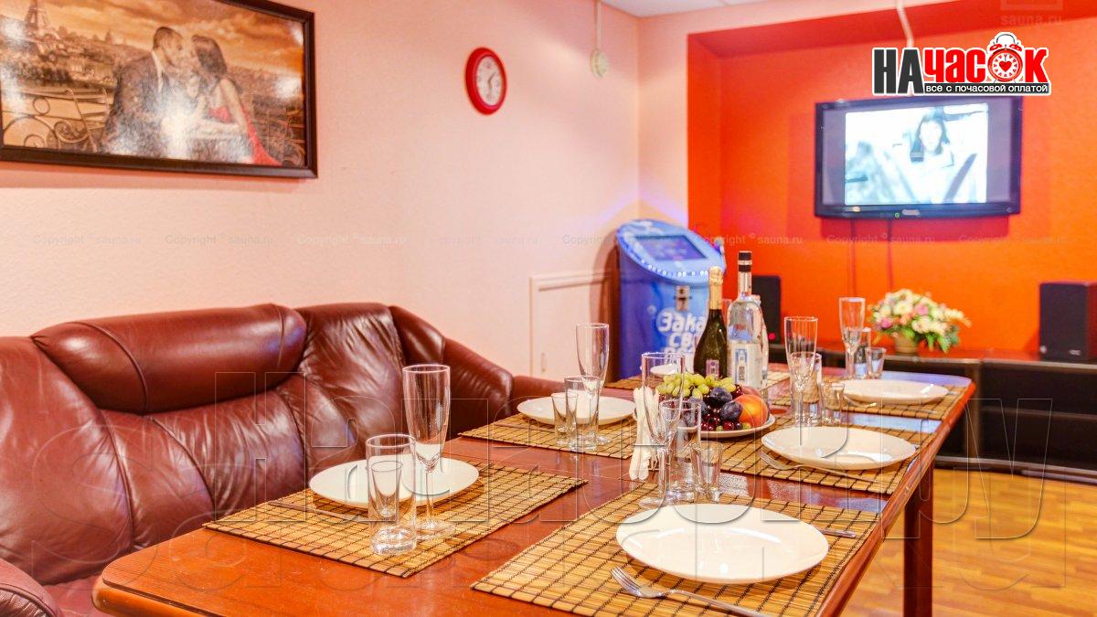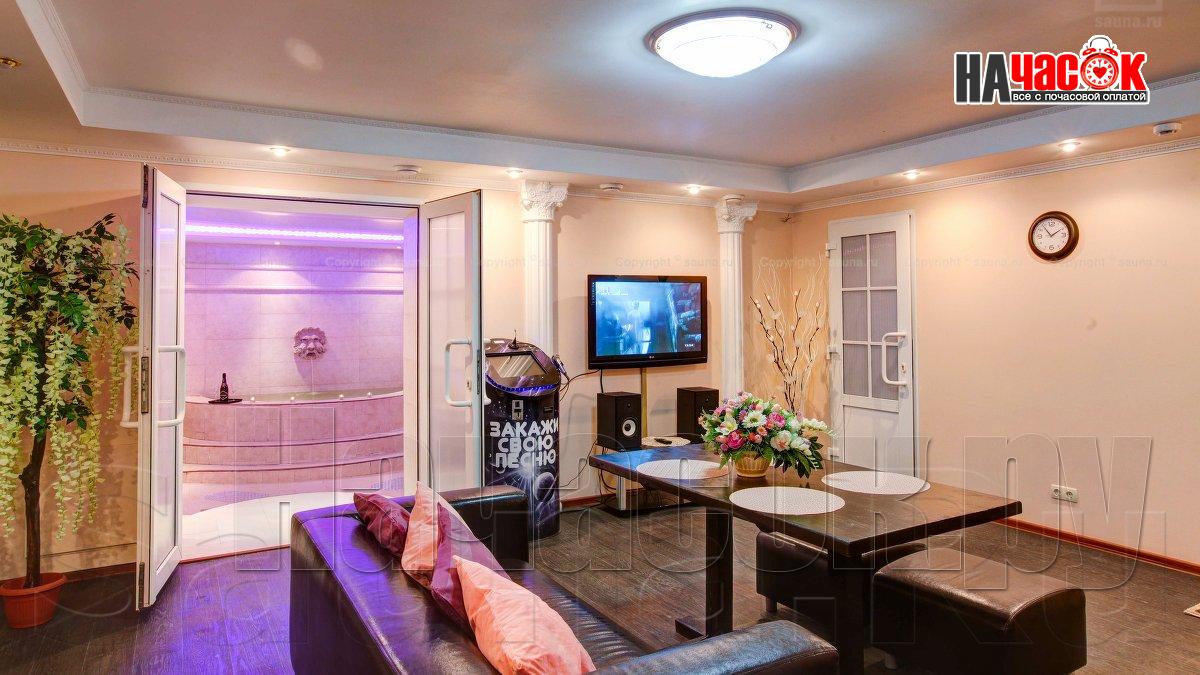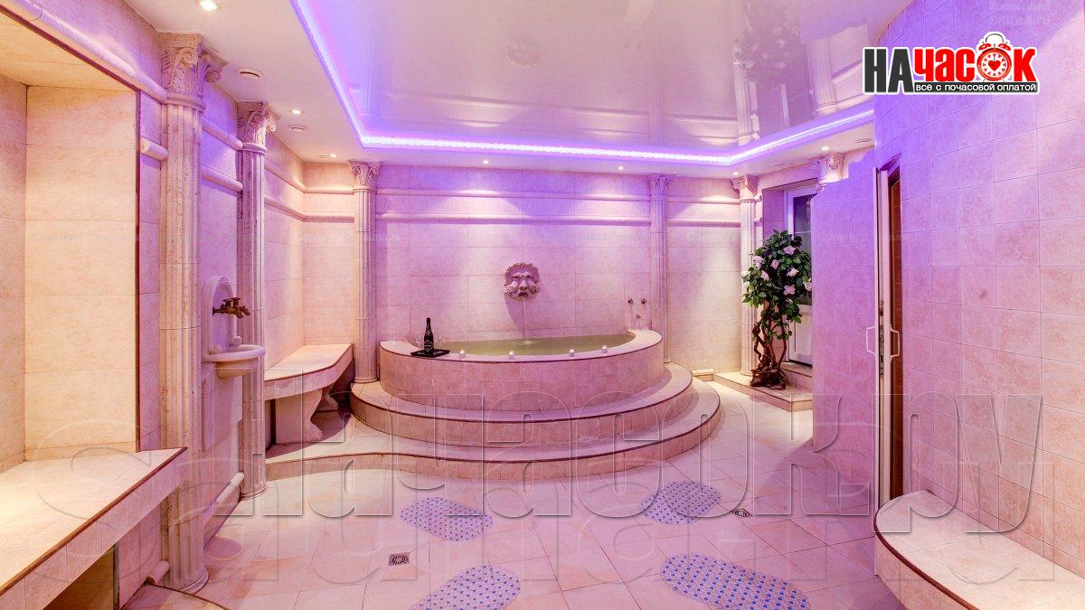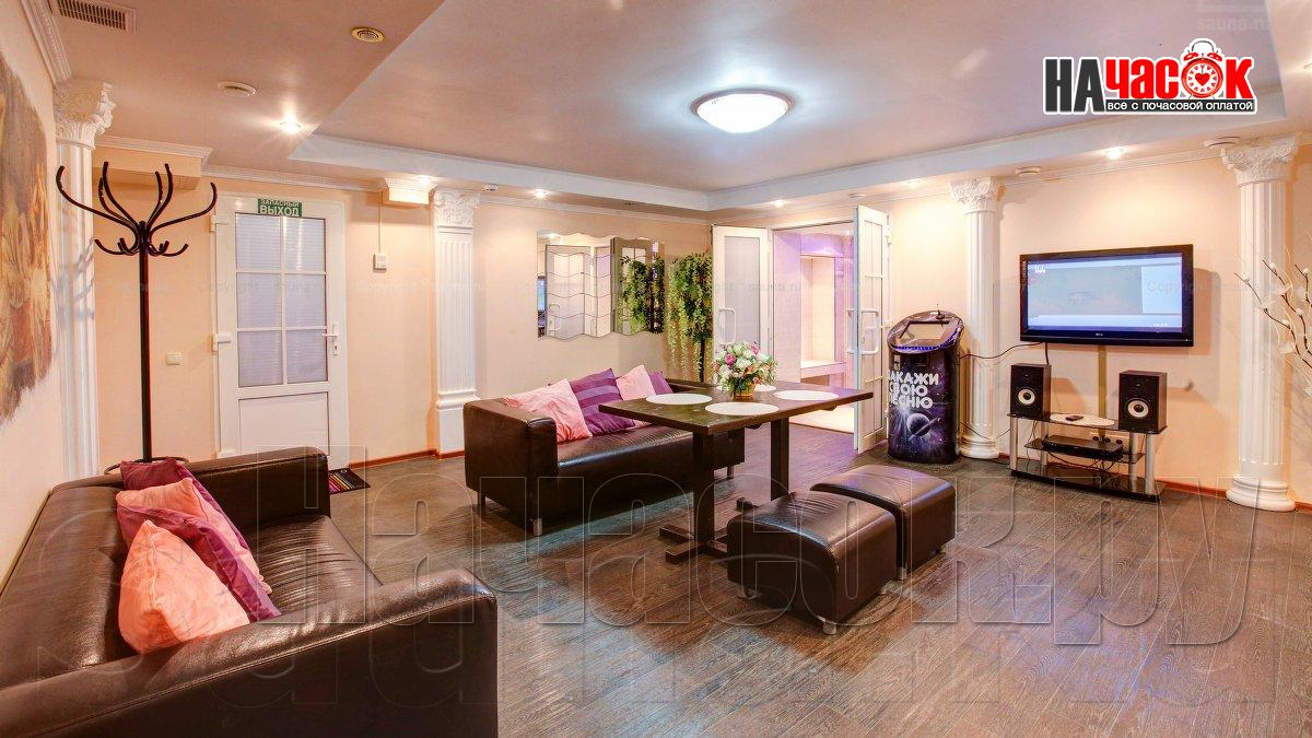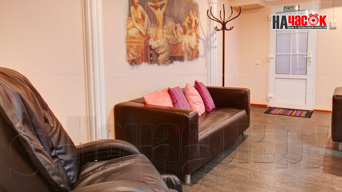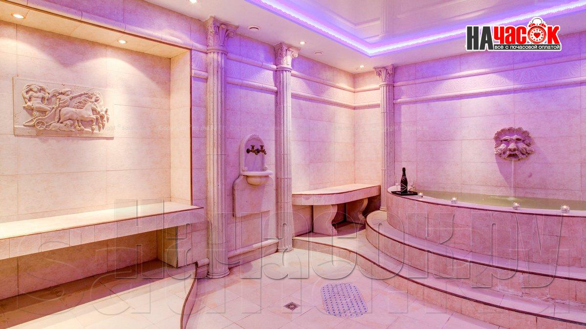 В интерьере гостиной, оформленной в греческом стиле, всегда господствуют умиротворенность, чистота и гармония. Этот зал рассчитан на радушный прием компании гостей 8-10 человек. Для них здесь оформлена необычайно комфортная трапезная зона с уютной мягкой мебелью и трапезным столом, где Вы можете отведать изысканные блюда из нашего ресторана. Стены украшены колоннами, зеркалами. Потолок украшен многочисленными светильниками, регулируемыми по Вашему усмотрению. В зале имеется новейшая музыкальная и видеотехника: плазменная панель с подключенным спутниковым телевидением с пакетом каналов НТВ+, система караоке. Воздух в помещении прекрасно кондиционируется. Банные процедуры предлагается осуществить в хамаме, рассчитанном на одновременное парение до 10 посетителей, для этого создано уютное пространство в греческом стиле, пол помещения и купель облицованы «под камень». Непосредственно в зоне парной-хаммам: купель, наполняемая по запросу посетителя водой любой температуры, душевая и тёплые лежаки для отдыха, либо принятия процедуры массажа, пилинга, скрабирования.Здесь Вам предложат осуществить разнообразные спа-процедуры, которые не только очень приятны, но и весьма полезны, сделать турецкий пилинг и массаж. В сауне имеется отдельный массажный кабинет, где профессиональный массажист сделает вам качественный массаж по классической программе.Отдыхая между заходами в турецкую парную, можно посмотреть телевизор и послушать расслабляющую музыку, покурить кальян и мило побеседовать, попивая душистый чай.Просторный зал, оборудованный русским бильярдным столом так же поможет отвлечся и развлечь себя и своих друзей партией-другой. Для организации праздничного стола можно заказать предлагаемые в заведении вкусные блюда европейской кухни. Для клиентов работает бар с широким ассортиментом напитков. Вцелом этот уютный красивый зал может стать местом проведения романтического свидания со своей парой, красивые интерьеры, приятные оздоровительные процедуры и романтическая атмосфера, которую по Вашему желанию помогут воплотить заботливые работники заведения, создадут чудесный праздник для тела и души. В зале оборудована чудесная комната отдыха, невероятно уютная и романтичная.