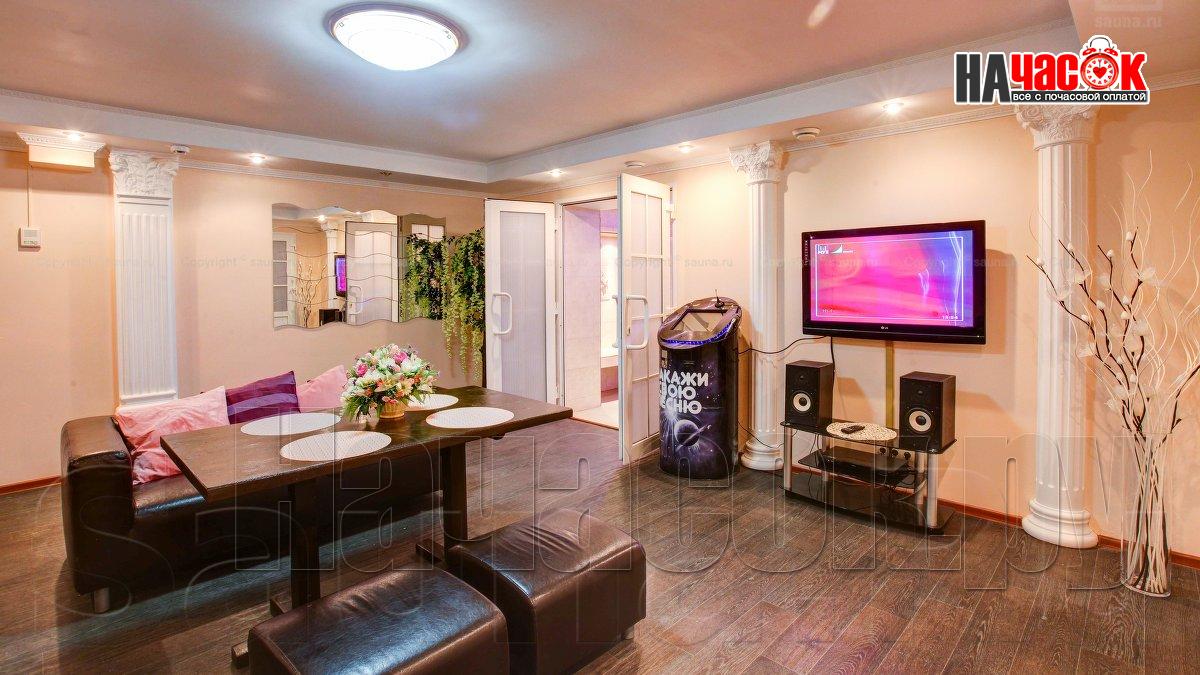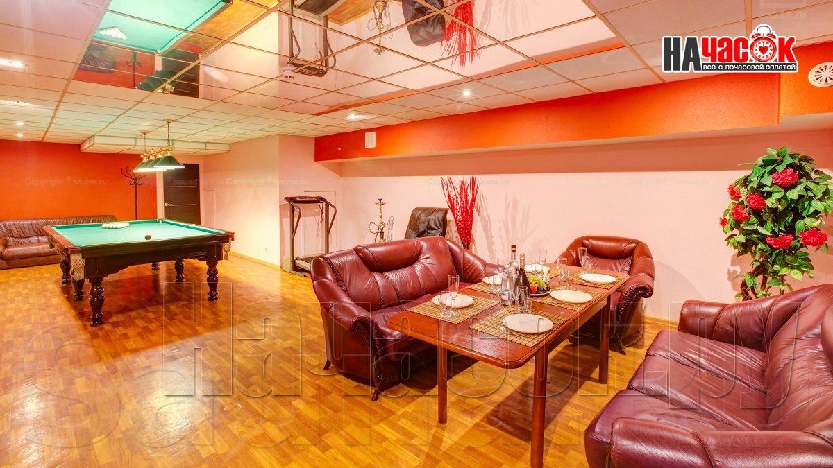 Финская парная рассчитана на 15 посетителей. В зале оборудован шикарный бассейн 3х4х1,8, который имеет красивую подсветку! Кроме гостиной, в помещении оборудованы две уютные комнаты отдыха. Для того чтобы провести время увлекательно, зал предусматривает бильярдный стол.Здесь есть спутниковое телевидение с пакетом НТВ+ и профессиональная система караоке. В музыкальное караоке-меню входит порядка 10 000 популярных отечественных и зарубежных песен.По предварительной договоренности клиенты могут получить полный спектр спа-процедур: услуги банщика, ароматерапия, оздоровительный массаж. Для этих целей в помещении оборудован удобный массажный стол. Бассейн с подсветкой и волнами, которые создают ощущение полного расслабления, так и манит окунуться в него после посещения классической финской парной, выполненной из кедра.Этот зал с изысканным дизайном подойдет как для семейного отдыха, так и для отдыха с друзьями и коллегами.Его можно арендовать одному или устроить романтическую встречу с любимым человеком.