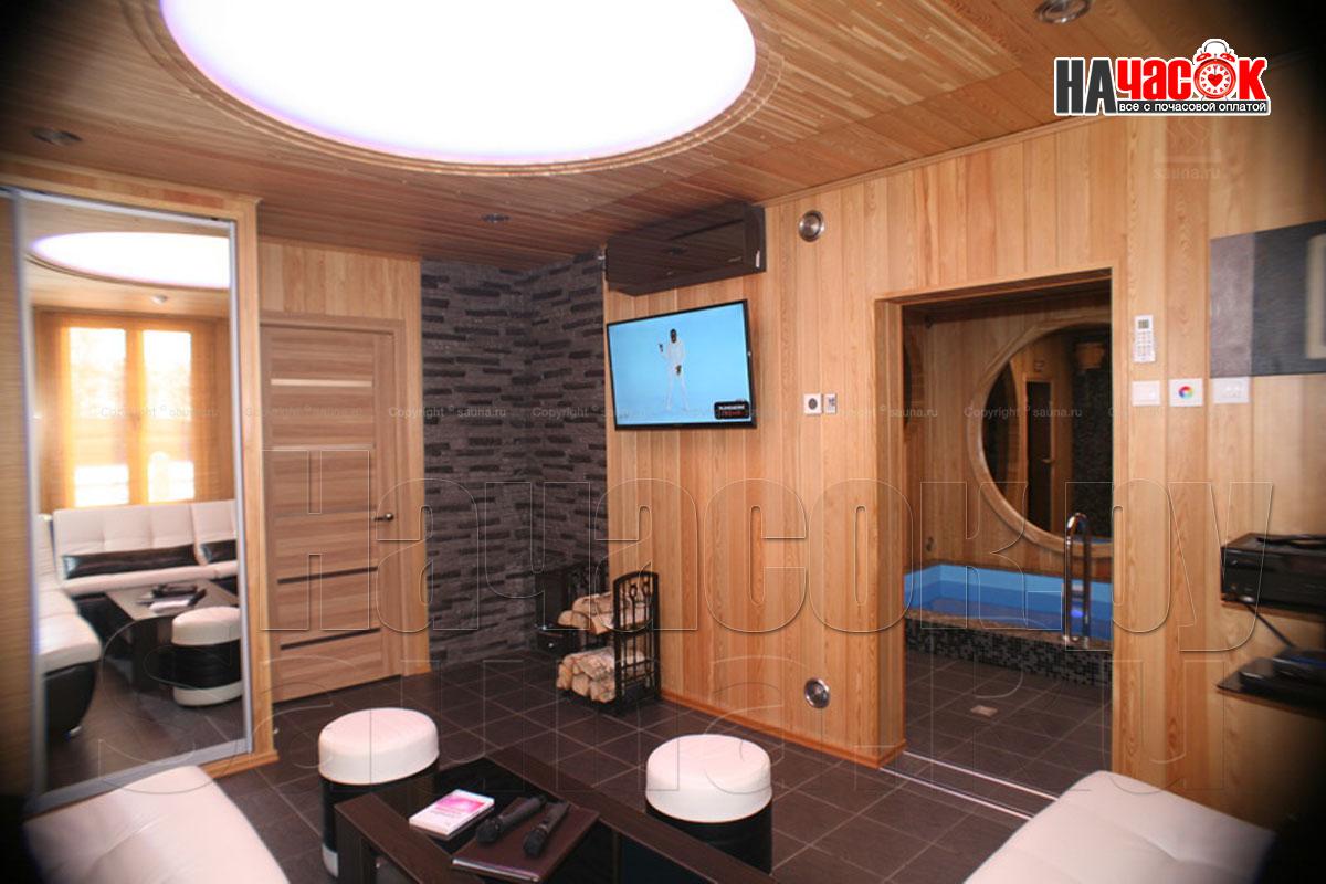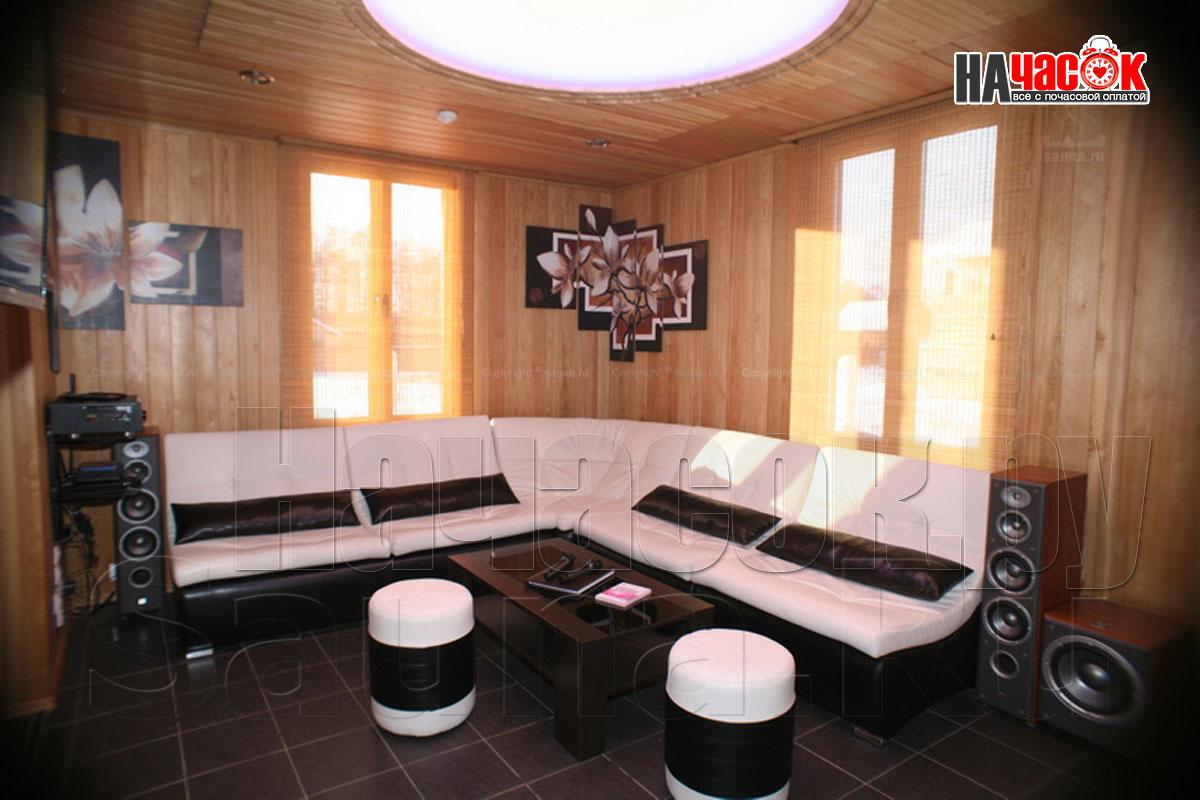 Уютная русская баня на дровах в ультра современном стиле. Большая парная, настоящая финская каменка наполненная 250 кг полудрагоценных камней Жадеит. Удобный бассейн с подогревом и огромным панорамным зеркалом, обливной устройство, душ и санузел. Просторная комната отдыха с удобным кожаным диваном, спутниковое телевидение, профессиональная аудио система с караоке. Вежливый персонал и непередаваемая атмосфера русской бани - сделает Ваш отдых незабываемым.