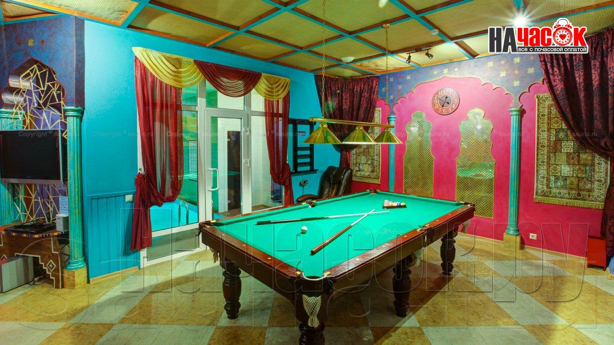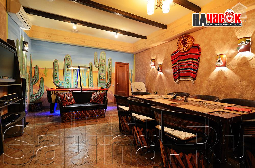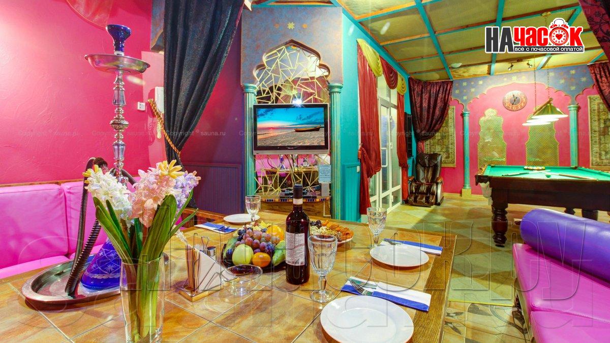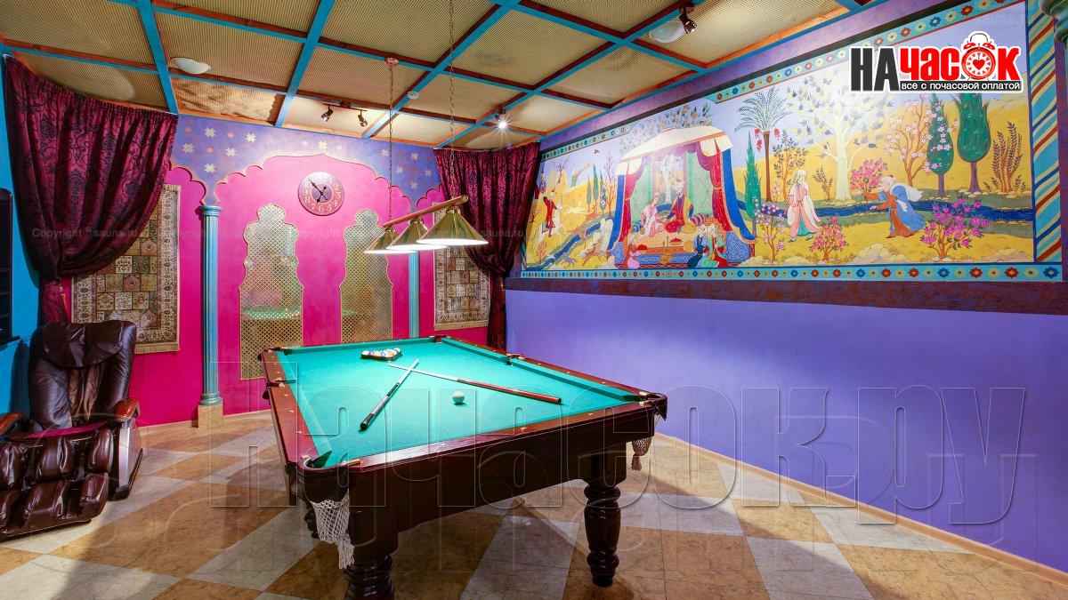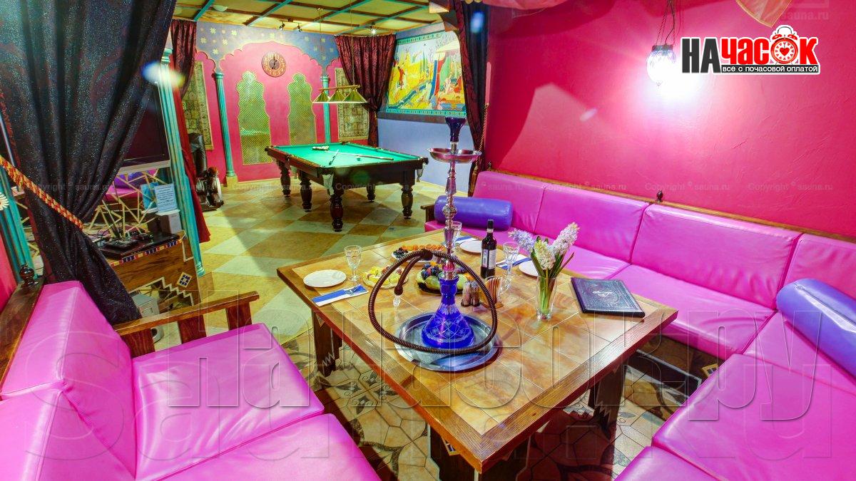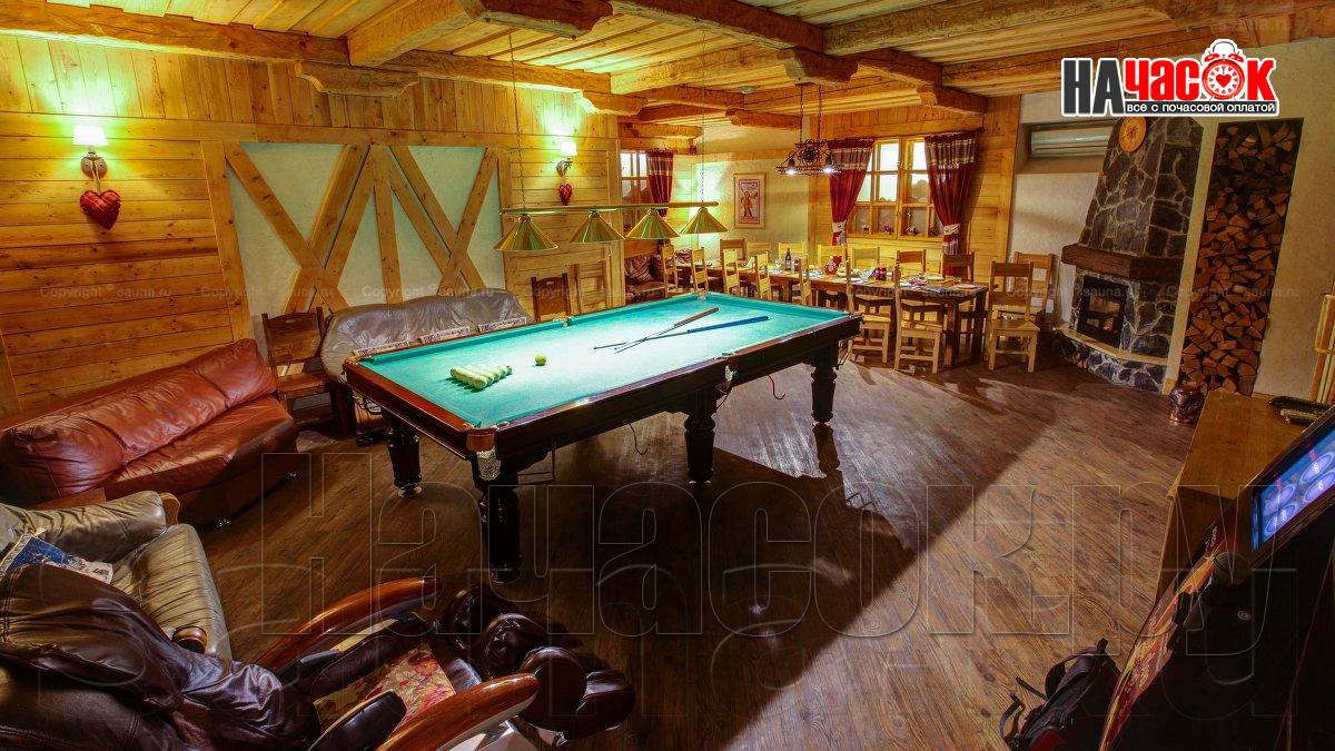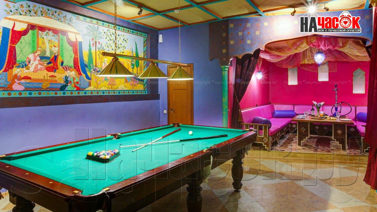 Зал Карибы рассчитан до 15-20 гостей, гостиная с мягкой мебелью, аудио-видео аппаратура, бильярд американский пул, кондиционер, бассейн 4,5х3 с аквагоркой, подогрев, фильтрация, подсветка, парная – турецкий хамам с натуральными ароматическими добавками. Банные услуги: Банщик, Ароматерапия, ароматы для парной, Косметический пиллинг