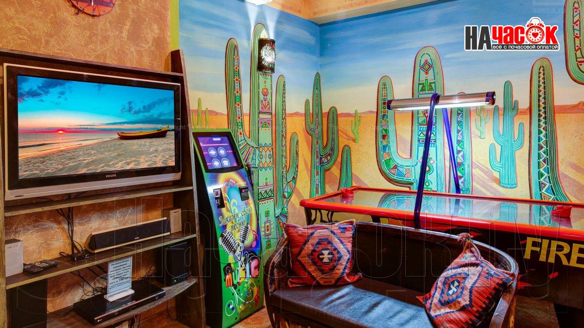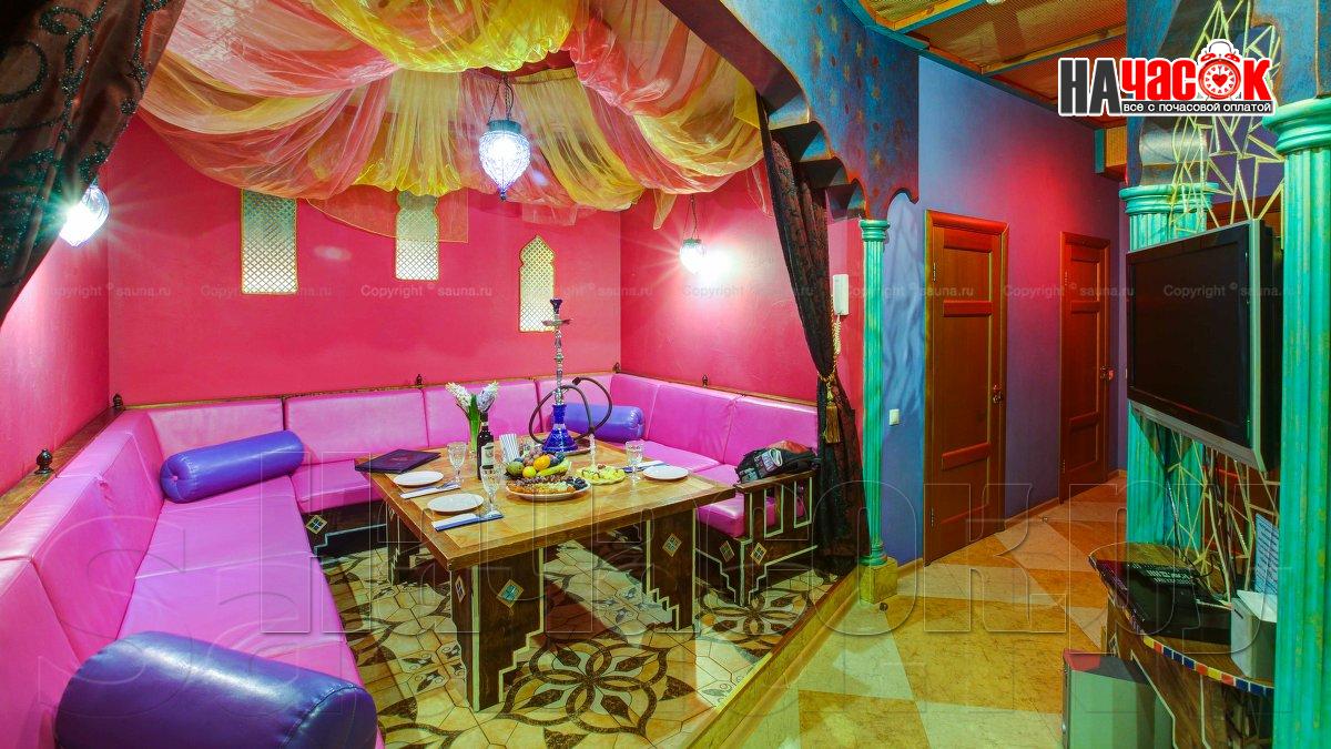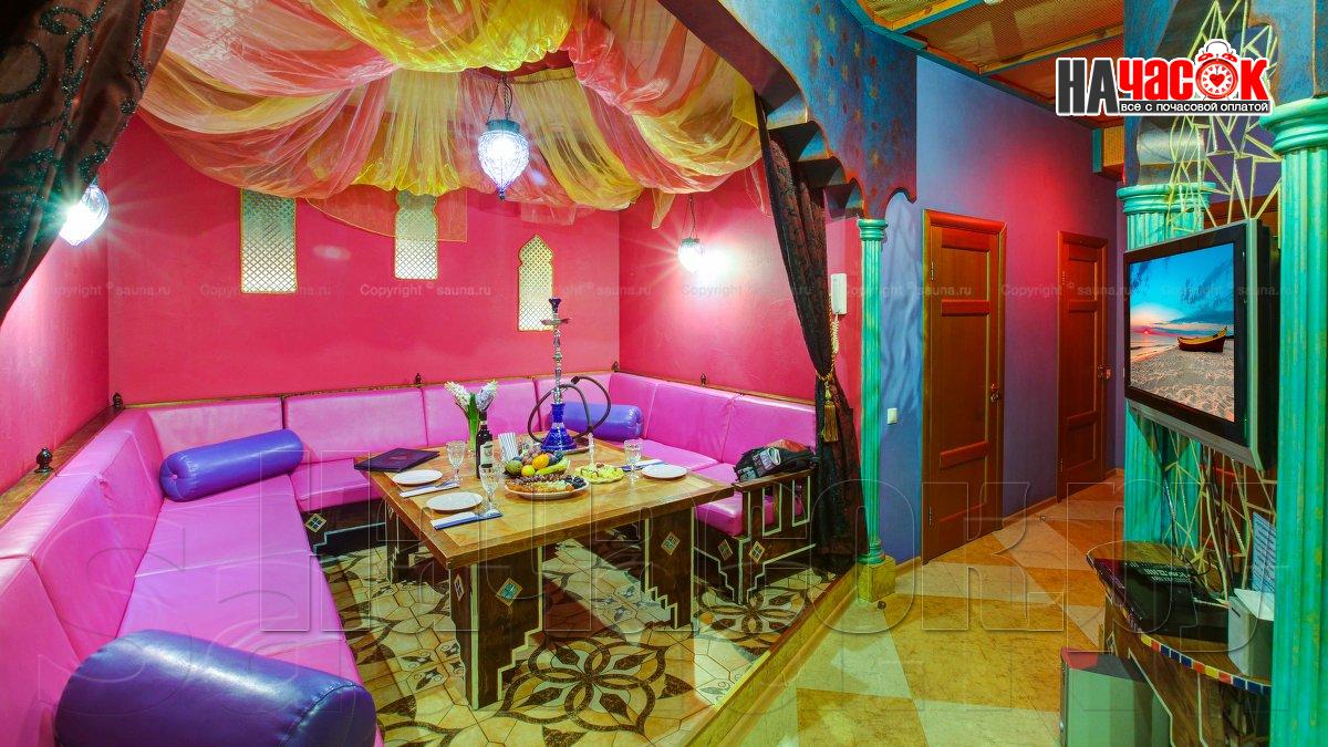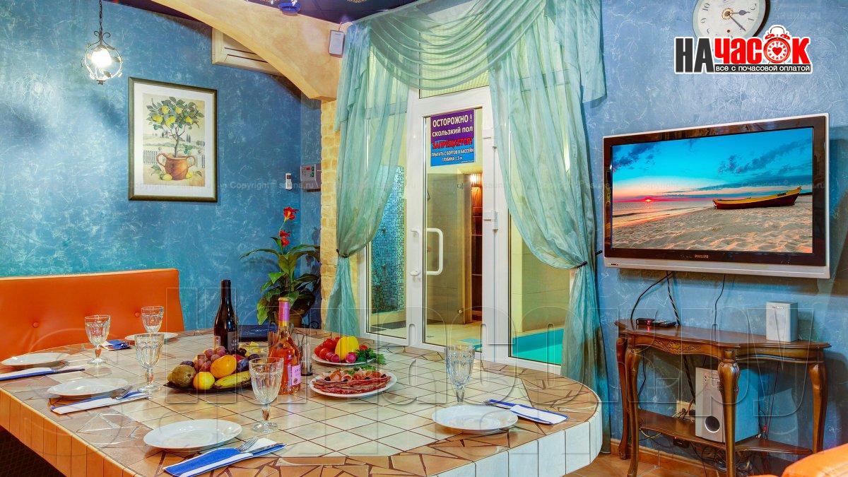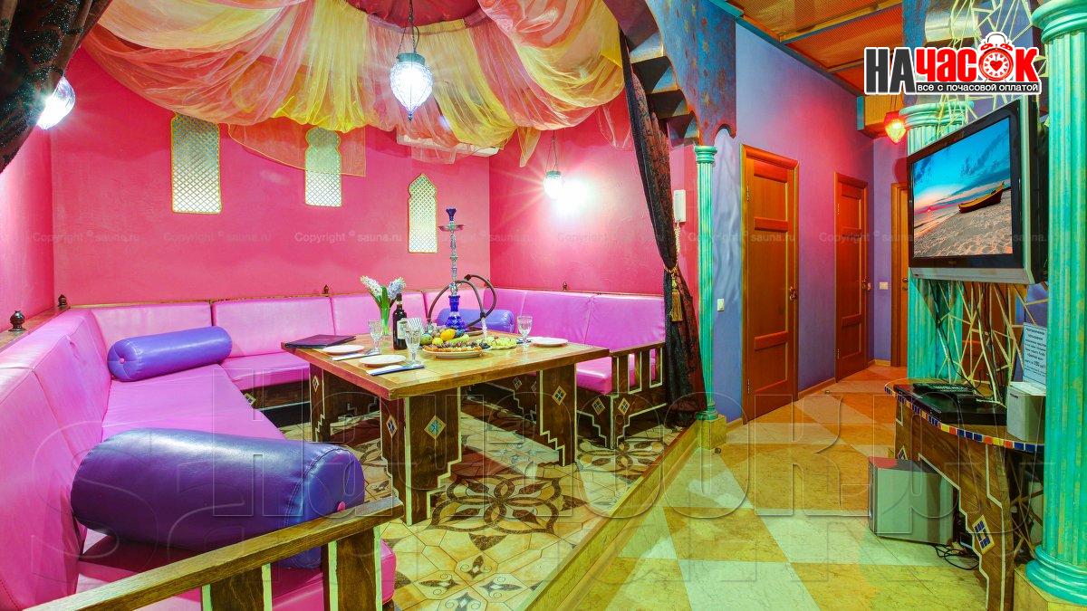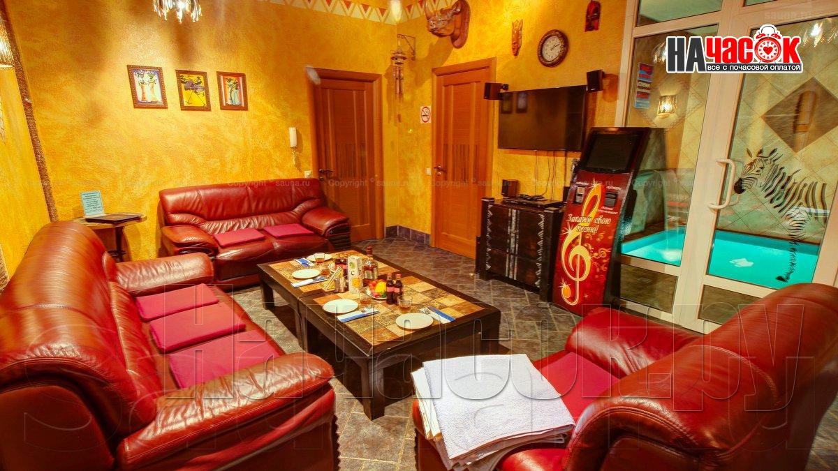 Зал Карибы рассчитан до 15-20 гостей, гостиная с мягкой мебелью, аудио-видео аппаратура, бильярд американский пул, кондиционер, бассейн 4,5х3 с аквагоркой, подогрев, фильтрация, подсветка, парная – турецкий хамам с натуральными ароматическими добавками. Банные услуги: Банщик, Ароматерапия, ароматы для парной, Косметический пиллинг