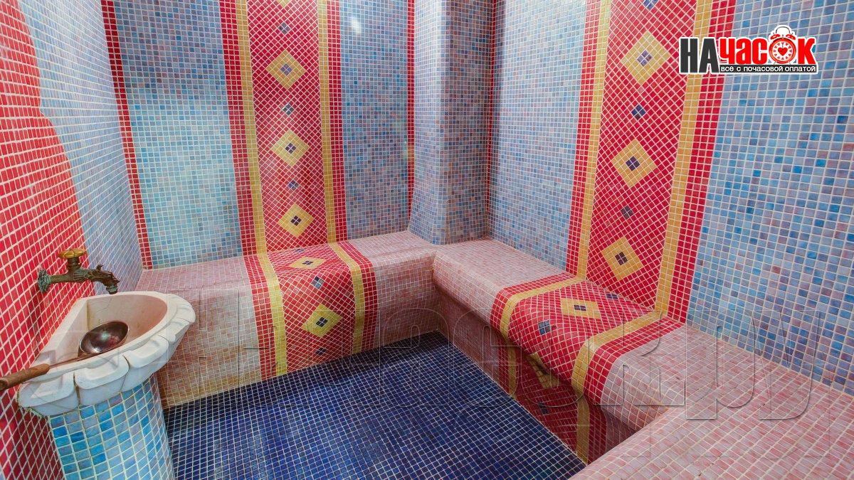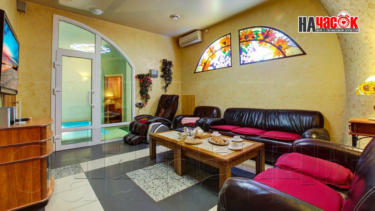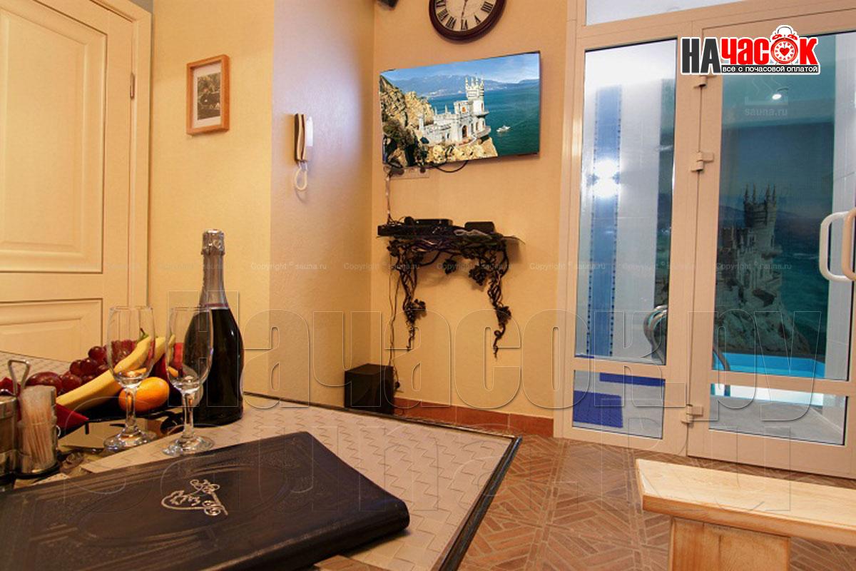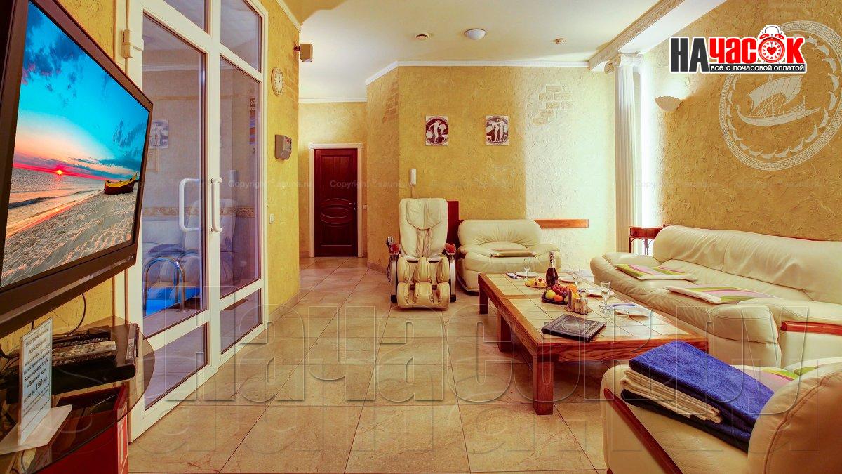 Зал Ялта рассчитан до 4-х гостей, гостиная с мягкой мебелью, аудио-видео аппаратура, кондиционер, бассейн 2х2 с гидромассажем, подогрев, фильтрация, подсветка, парная – турецкий хамам с натуральными ароматами трав. Банные услуги: Банщик, Ароматерапия, ароматы для парной, Косметический пиллинг