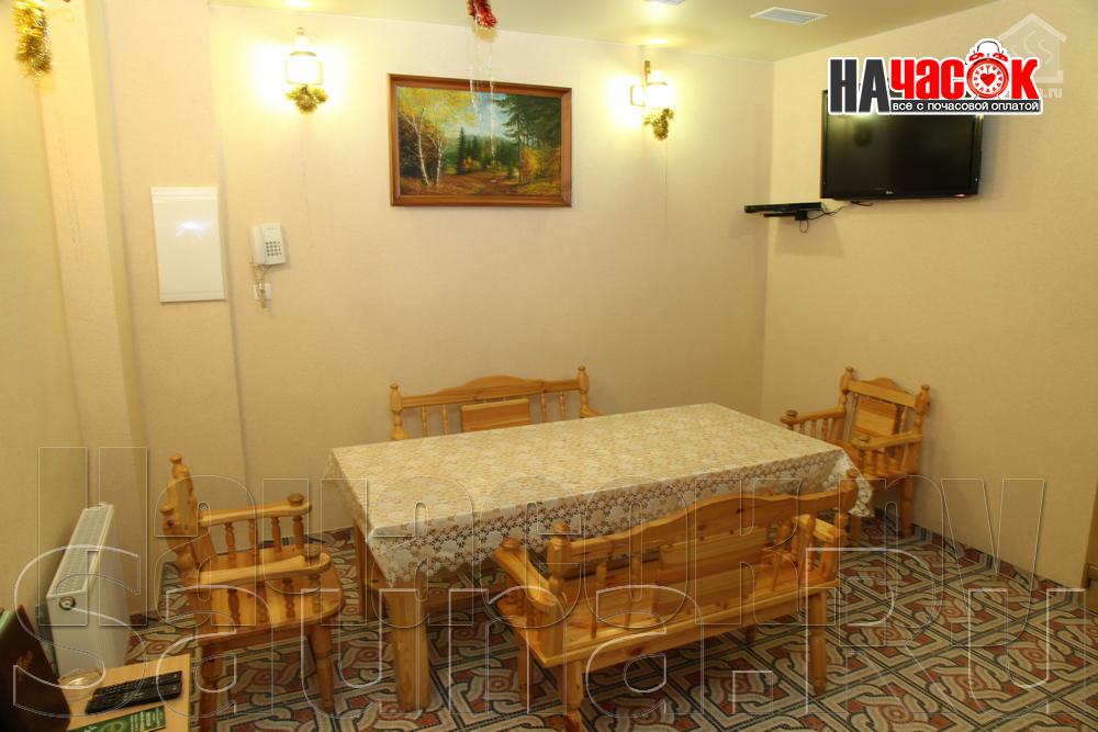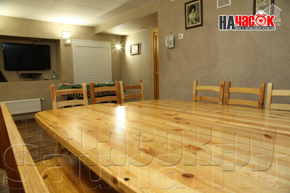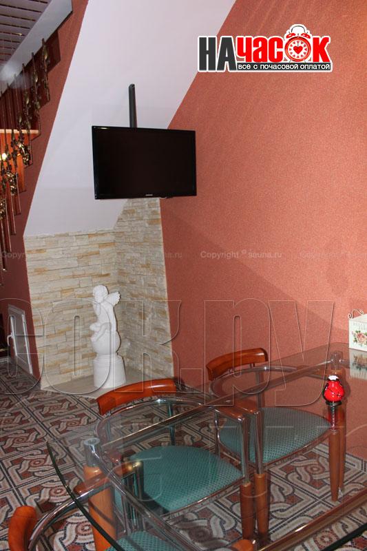 Первый этаж – холл со столом и стульями, раскладной диван, TV, DVD, караоке.