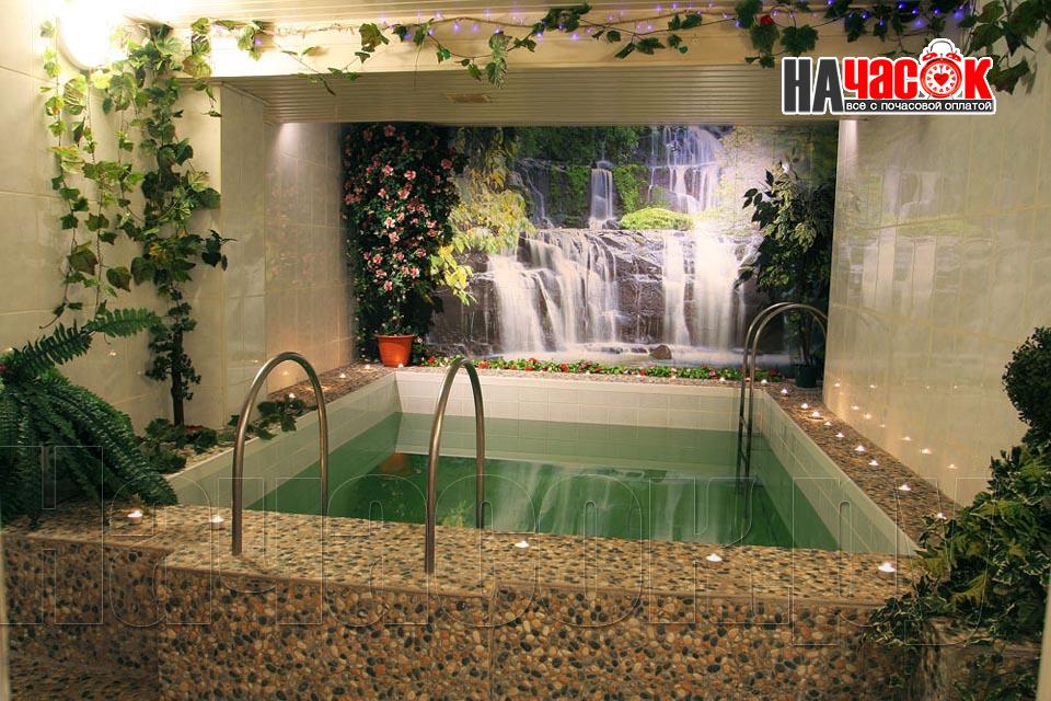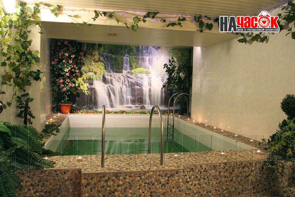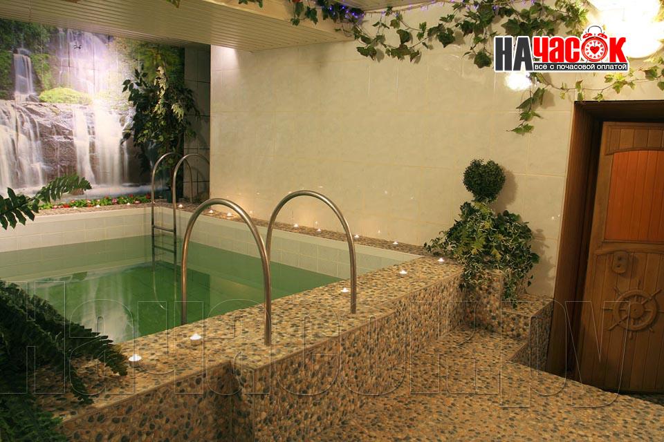 Попариться здесь предлагается в просторной русско-финской парной вместимостью до 8 человек, а охладиться после процедуры парения – в прохладной воде бассейна размером 3x4 метра и глубиной 1,7 метра.