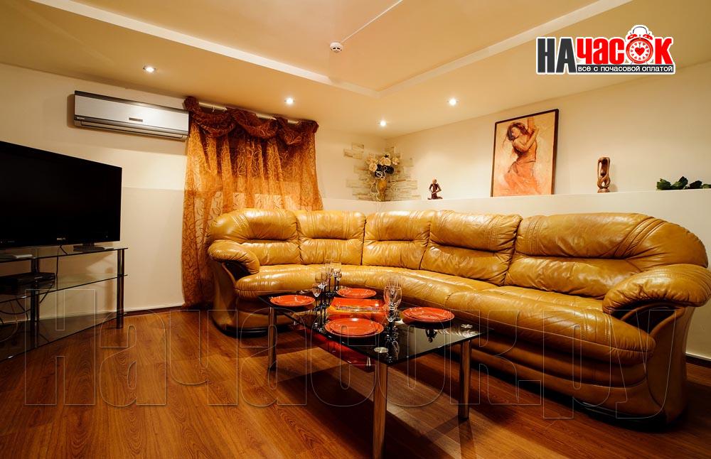 Зал отдыха рассчитан на приятный досуг для дружных компаний до 10 человек. Для гостей зал оборудован современной аппаратурой: большая плазменная панель со спутниковым телевидением и пакетом каналов НТВ+, есть музыкальный центр и система караоке, так что устроить веселую вечеринку с зажигательными танцами не составит труда. Воздух в помещении отлично кондиционируется.