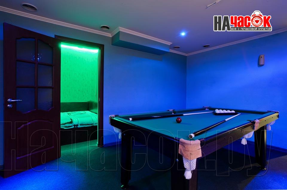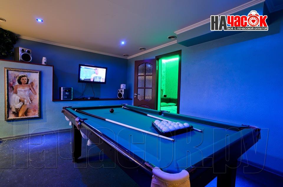 Этот зал сауны «Отдохни» на Плещеева имеет очень привлекательный современный дизайн, красивая синяя подсветка придает интерьеру загадочность. Зона отдыха оборудована большим мягким диваном-уголком, удобно расположившись на котором, можно насладиться просмотром интересного кинофильма или развлекательного шоу на большом телеэкране. Подключено спутниковое телевидение с пакетом каналов НТВ+ спорт и Микс. Для того чтобы весело провести время, есть система караоке, отдыхая веселой компанией друзей, можно устроить песенный конкурс. Любителям бильярда предлагается сыграть партию в русский бильярд. Банкетная зона оборудована большим столом и удобными мягкими диванчиками. По вашему заказу заботливые сотрудники сауны накроют стол для банкета блюдами русской и европейской кухни, разрешается также приносить блюда и напитки с собой. В Большом зале находится просторная финская парная, рассчитанная на 10 посетителей. В парной разрешается использовать веники и ароматические эфирные масла, которые в широком ассортименте представлены в заведении. Для охлаждения после процедуры парения предусмотрен бассейн 3×3 метра, вода в котором фильтруется и подогревается. Для желающих уединиться в Большом зале имеются две уютные комнаты отдыха с большими удобными кроватями. |