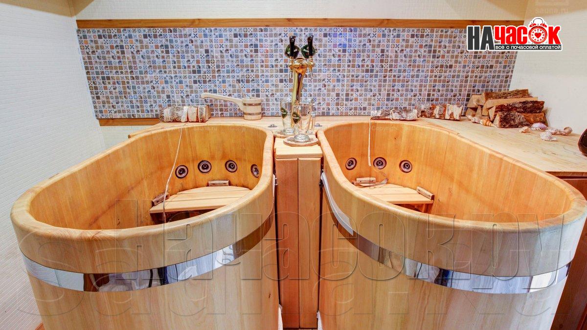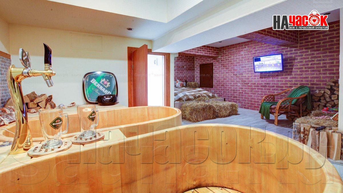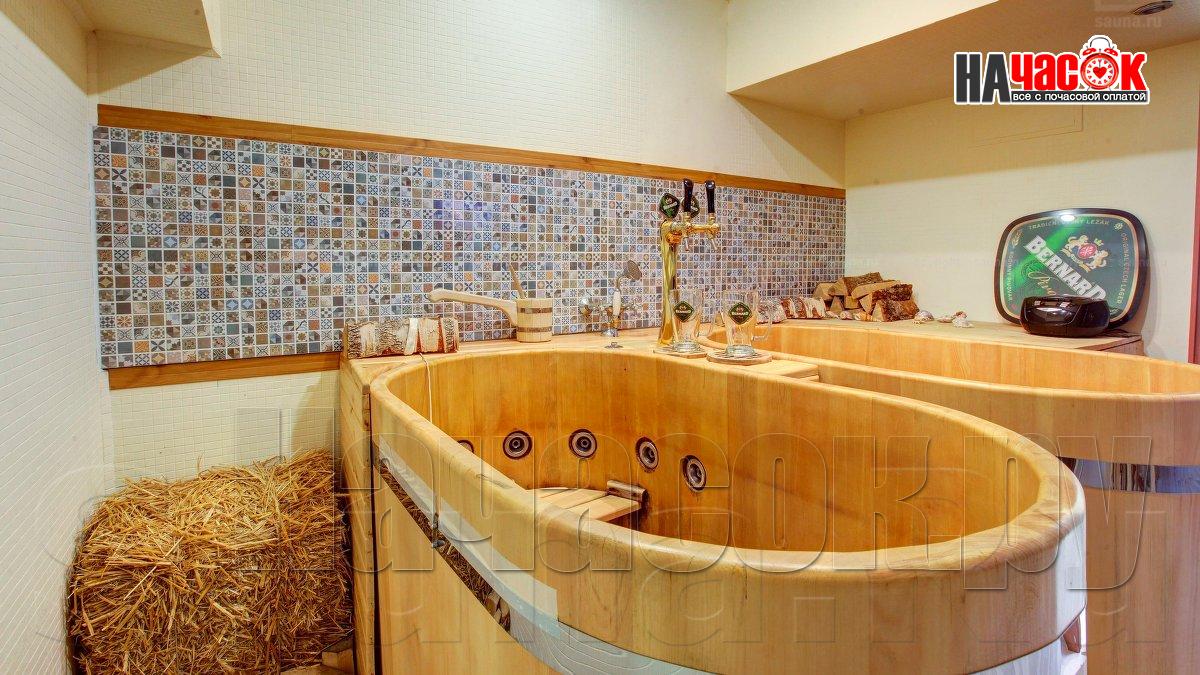 Сначала тело распаривают в кедровой фитобочке с эфирными маслами. После этого человек ложится в кедровую купель, которая наполнена специально подготовленным пивным или винным раствором.В купель встроена Пивная башня на 2 крана, Пиво живое, светлое и темное марки Bernard (премиум-класс, импорт) без ограничения. К винным купелям - бутылка красного/белого вина (на выбор) и сырная или фруктовая тарелки. Дполнительно можно заказать массаж.