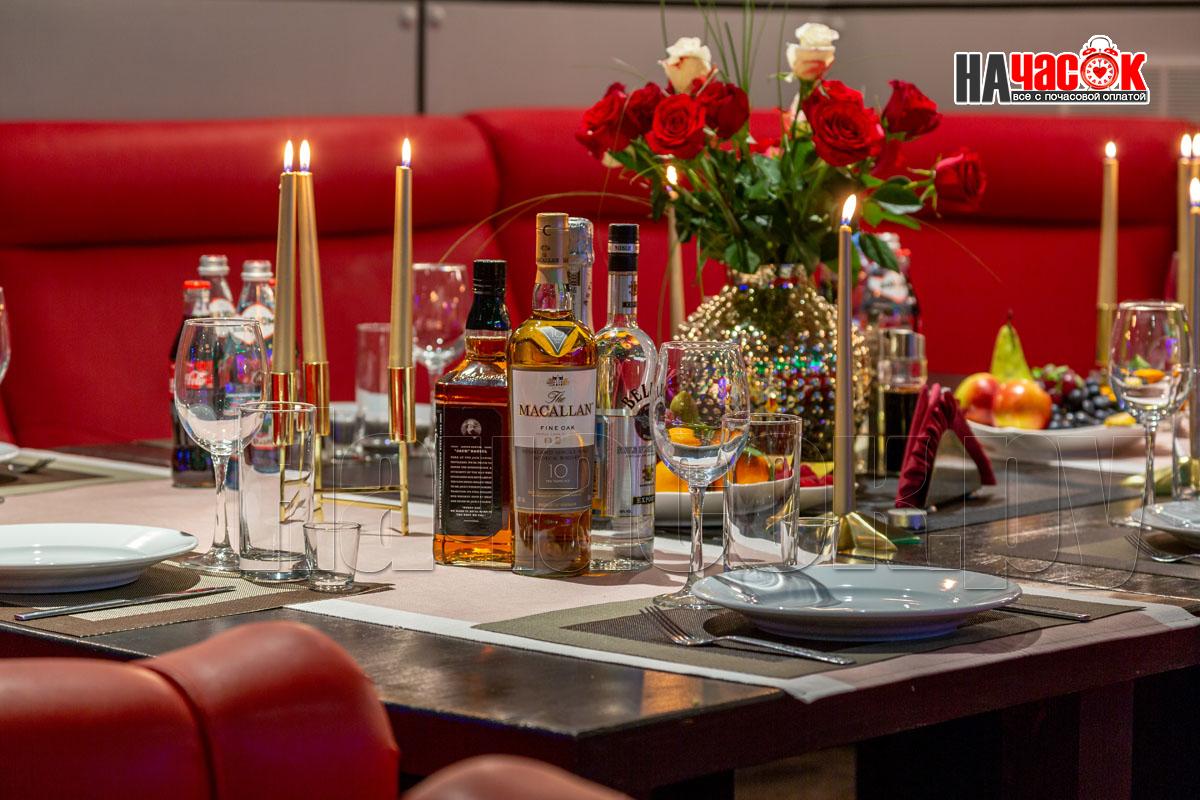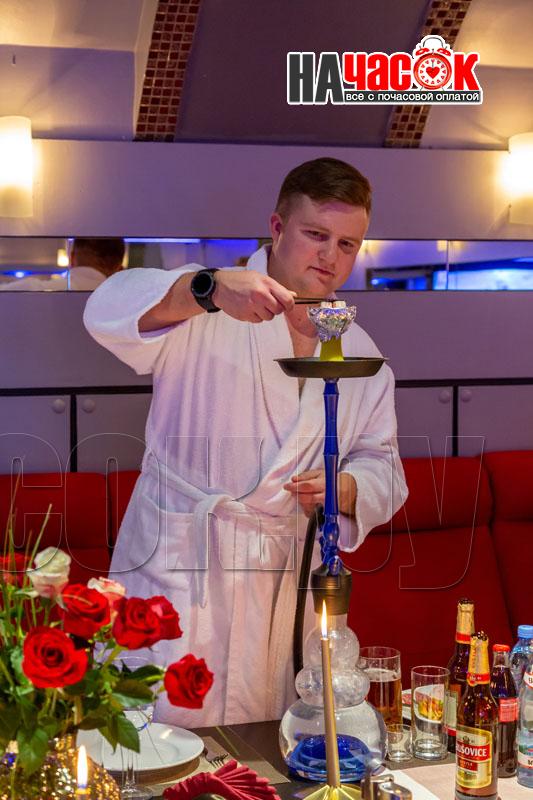Модный дизайн синего зала выглядит очень привлекательно. Здесь одновременно может отдыхать компания из 10 человек. Просторный банкетный зал выполнен в синем цвете с отделкой из зеркал.