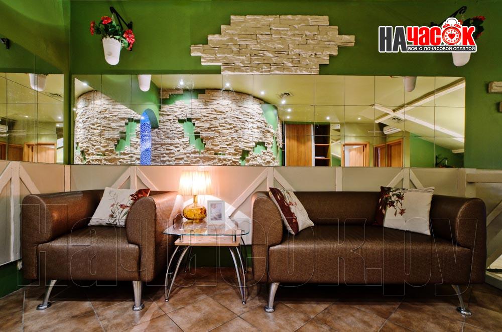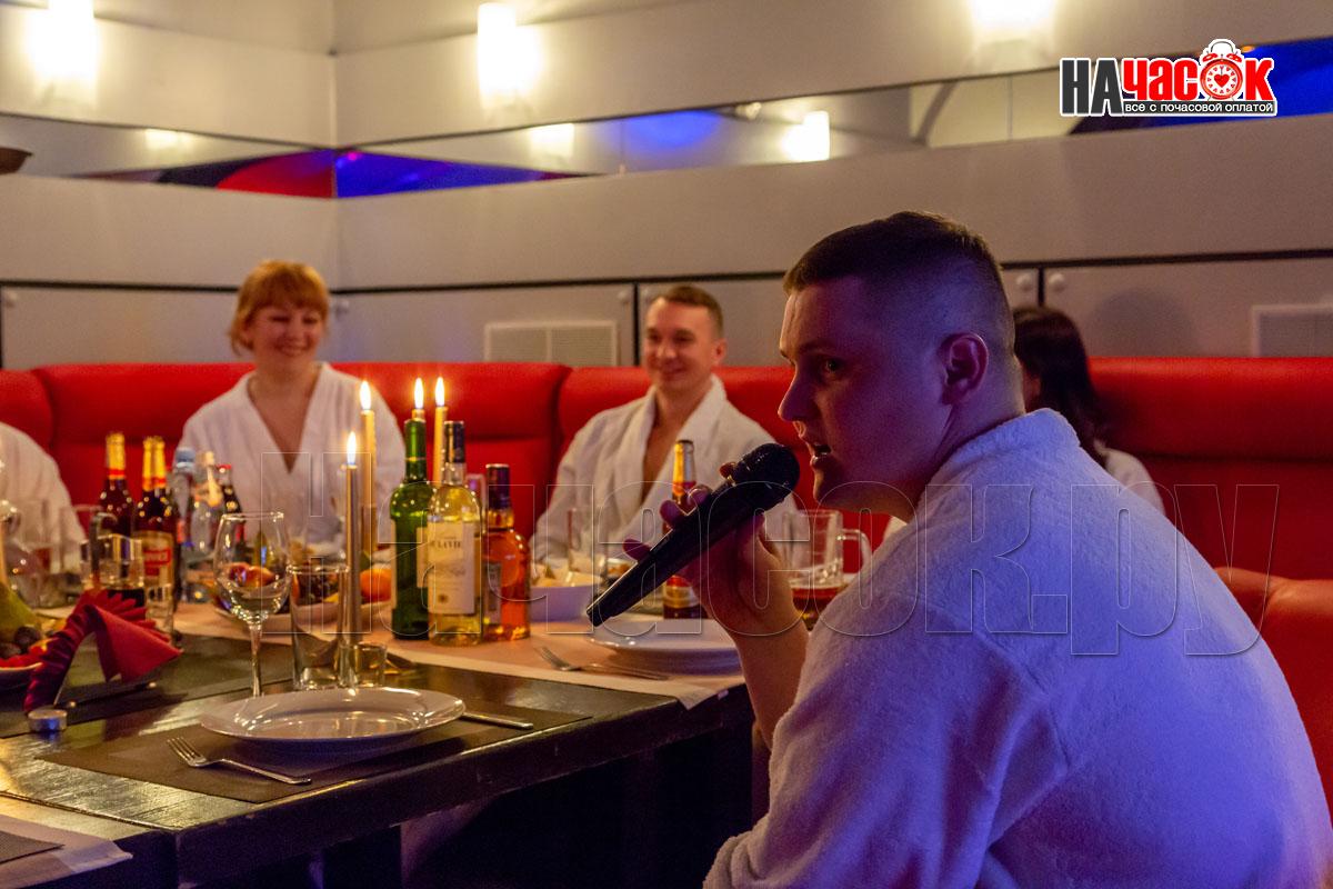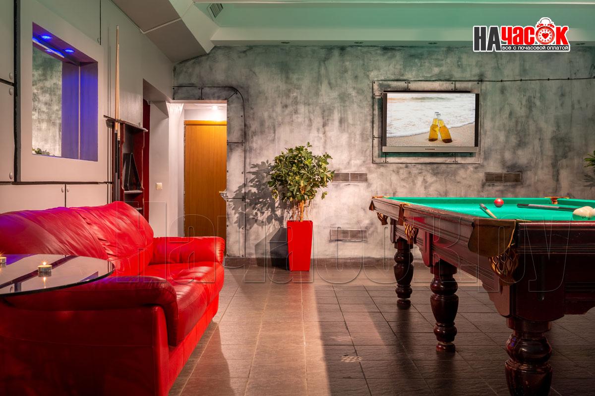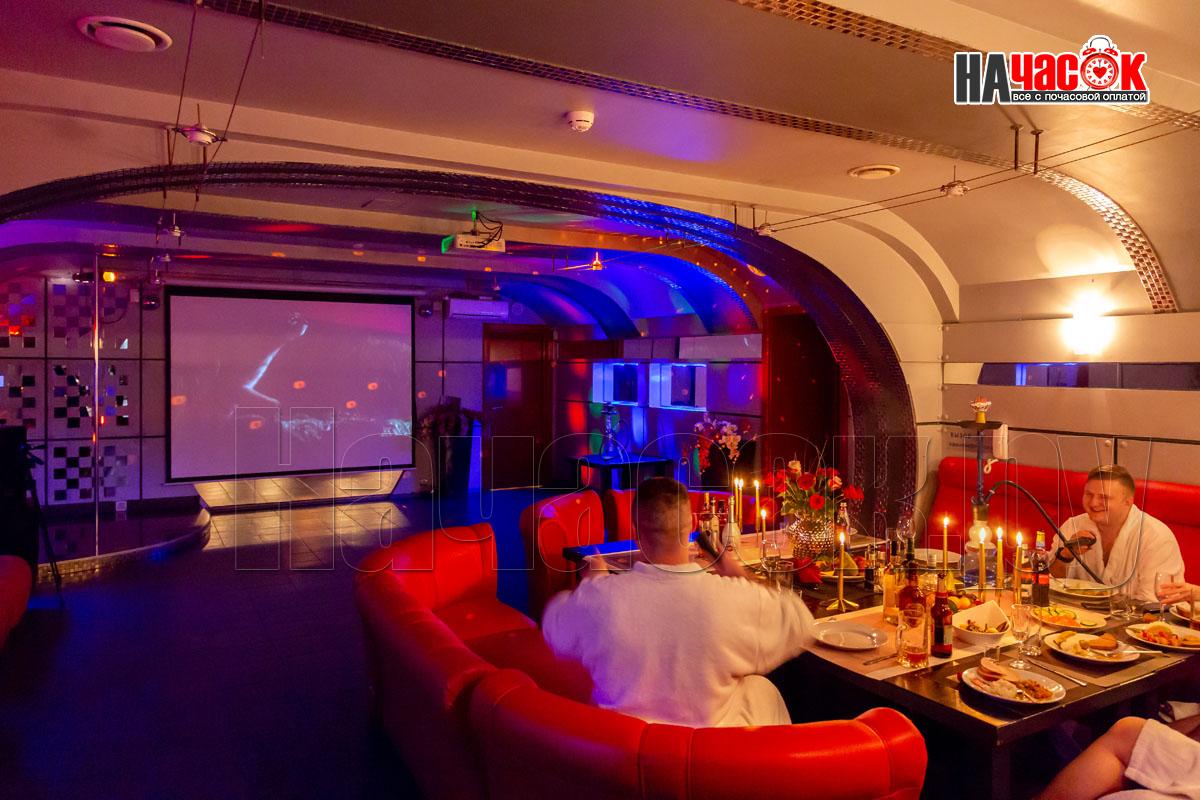 Большой зал оборудован как просторная шикарная подводная лодка. Он может разместить до 40 посетителей. Внутреннее убранство поражает своей неповторимой красотой и изобретательным подходом в оформлении интерьера. Дизайнерская подсветка создает эффект пребывания в подводном царстве, который усиливают светильники, стилизованные под аквариумы с рыбками. Красная мебель, вазы с красивыми букетами и потолки замысловатой формы украшают помещение и дополняют общий стиль. Для любителей «горячего» отдыха в банкетном зале оборудован стрип-подиум, зал оборудован профессиональным караоке, снабжен современной аудио- и видеотехникой. Поклонникам спорта предлагаем поболеть за любимую команду в прямом эфире на экране широкомасштабного проектора. Дверь в виде иллюминатора приведет вас в бильярдный зал, где установлен стол для русского бильярда и расположено помещение с бассейном. Это помещение украшено пальмами и декором из натуральных камней, создающим эффект пребывания в подводной пещере. Огромный бассейн, размером 12 на 8 метров, позволит в полной мере насладиться водными процедурами и охладить тело после посещения горячей финской парной. Сама парная имеет внушительные размеры, в ней могут расположиться до 10 посетителей одновременно. Банные процедуры осуществит профессиональный банщик. А затем можно принять прочие spa-процедуры, которые предлагаются здесь в широком ассортименте. В этом зале есть две шикарные комнаты отдыха с огромными удобными кроватями и зеркалами на стенах и потолке. Посетив этот зал, вы непременно останетесь довольны качеством банных услуг, дизайном помещения и внимательным отношением обслуживающего персонала! В заведении действует гибкая система скидок для постоянных клиентов, а также скидка на посещения в утренние и дневные часы. Рядом со зданием имеется охраняемая стоянка. |