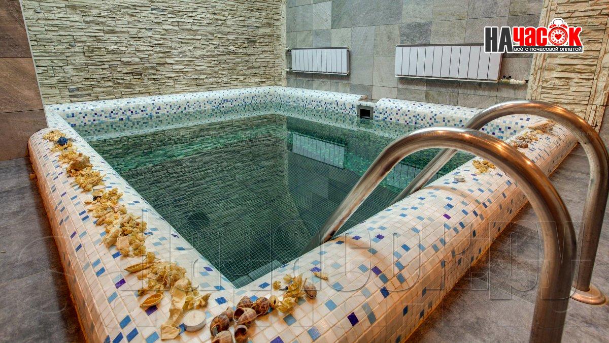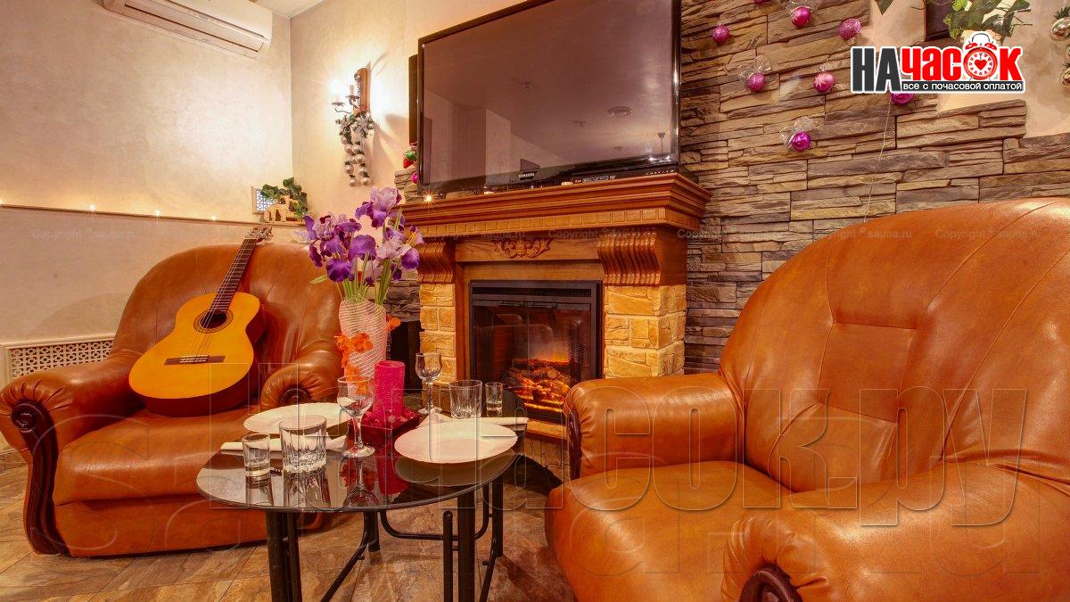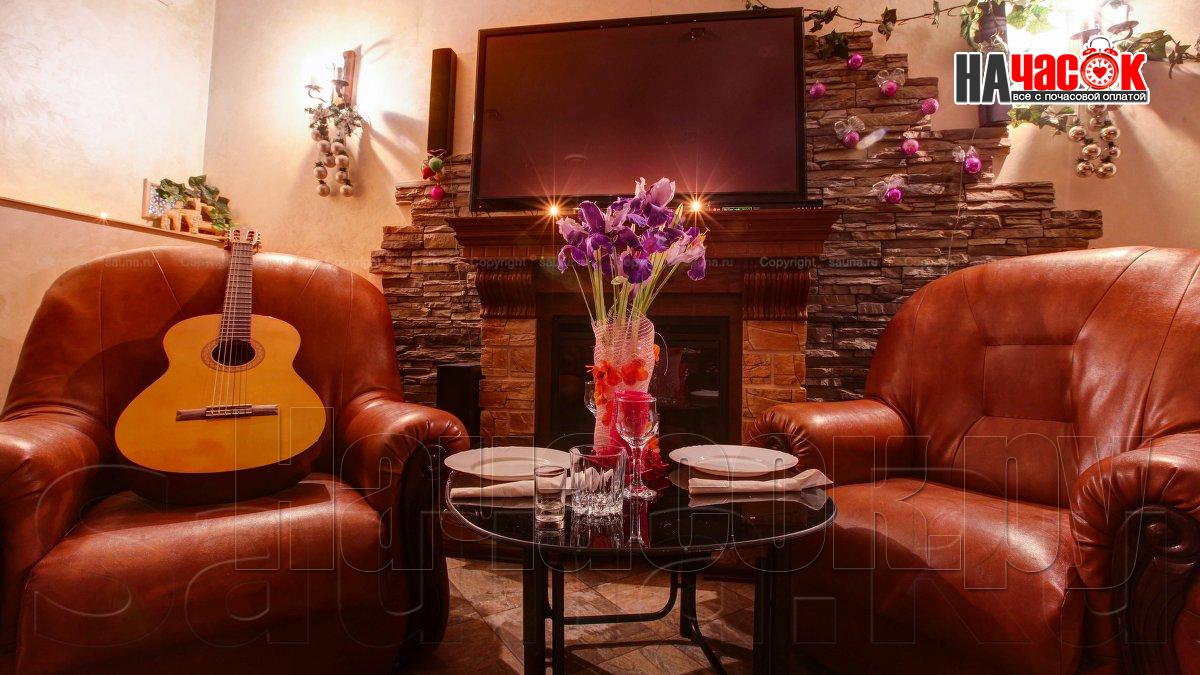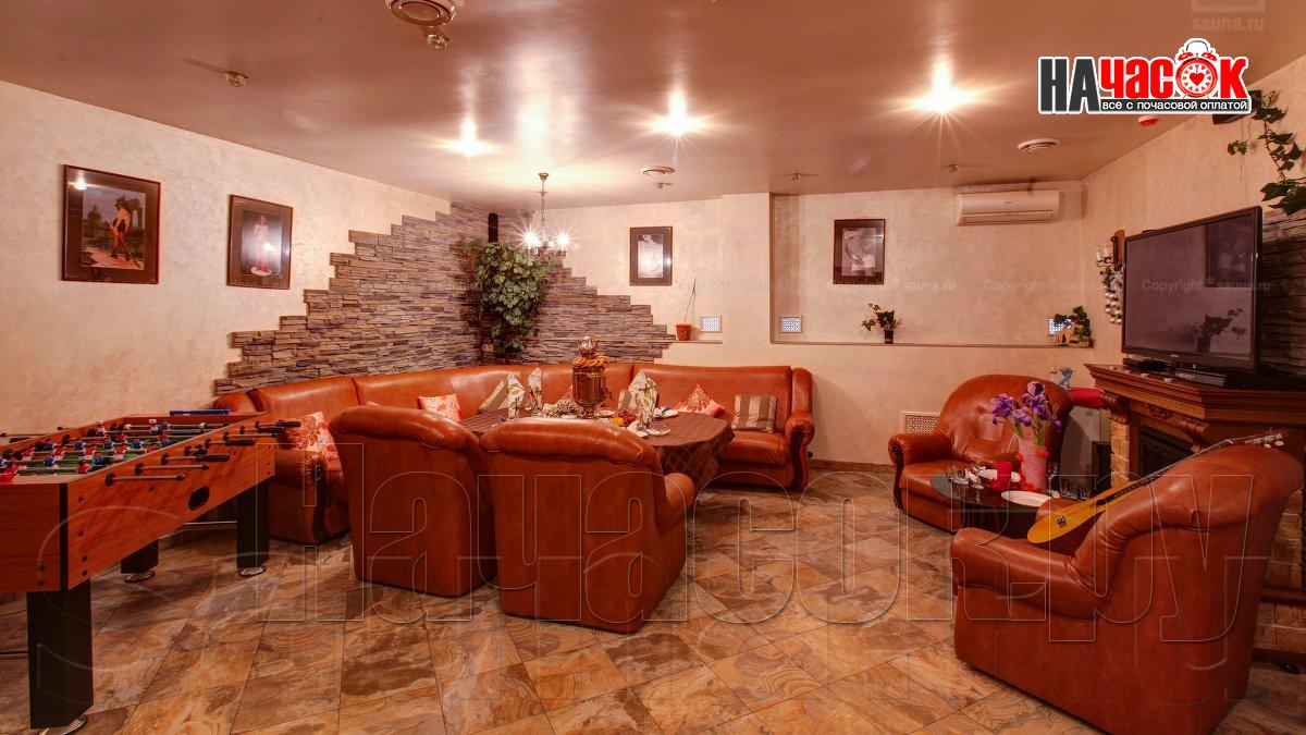 Красивый светлый зал отдыха сауны очень уютен. Он оформлен в современном стиле с использованием натуральных материалов. Природные материалы облагораживают помещение и придают ему уют и комфорт. Интересный каменный декор, красивый камин и картины на стенах добавляют домашнего уюта. Над камином установлена большая плазменная панель, подключено спутниковое телевидение с пакетом НТВ+, есть система караоке – незаменимая вещь при организации веселого праздника. Зал рассчитан на 15 гостей, в зоне для банкета установлен большой кожаный диван-уголок и удобные мягкие кресла, есть стол для трапез. В заведении работает собственная кухня, клиентам доступны блюда русской и европейской кухни. Достаточно вместительная парная способна принять в свои жаркие объятия до 8 посетителей одновременно. В парной можно насладиться традиционным банным веничным массажем, устроить сеанс ароматерапии с помощью ароматических эфирных масел целебных растений. Эта процедура является не только очень приятной, но и обладает лечебными свойствами. Ароматы помогают справиться с простудой, головной болью, бессонницей и стрессом, действуют успокаивающе и способны поднять настроение, снять усталость. Расслабленное и разгоряченное в парной тело так приятно погрузить в нежную освежающую воду бассейна. В сауне есть бассейн размером 3×4 метра с кристально чистой (благодаря фильтрации) водой, температура воды в бассейне составляет 27°С. Любители водных процедур и гидромассажа оценят также наличие большой ванной-джакузи, установленной рядом с бассейном. Для развлечения посетители сауны могут сыграть в аэро-хоккей и настольные игры, насладиться приятной музыкой или просмотром художественного фильма, телевизионной передачи или спортивного матча. Желающие уединиться могут отдохнуть в одной из двух оборудованных в зале комнатах релаксации. Эти уютные комнаты имеют зеркальные потолки и большие удобные кровати. Внимательные сотрудники сауны побеспокоятся о вашем качественном отдыхе, организации банкетного стола или романтического ужина, по вашему желанию подготовят зал к романтическому свиданию. |