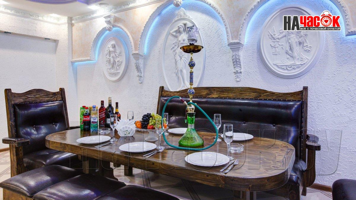 1300 руб До 2 чел, 1500 руб/час до 6 человек с едой и напитками, далее 100 руб/час доплата за каждого человека