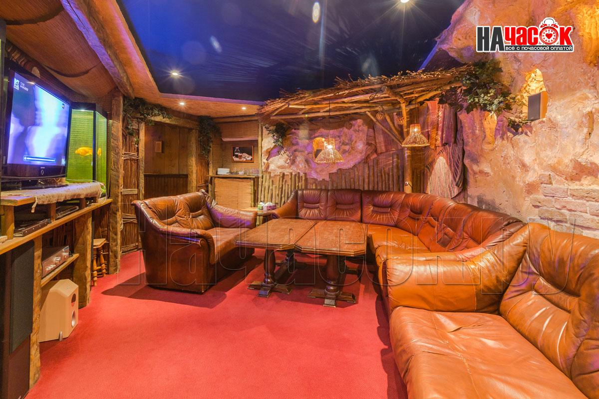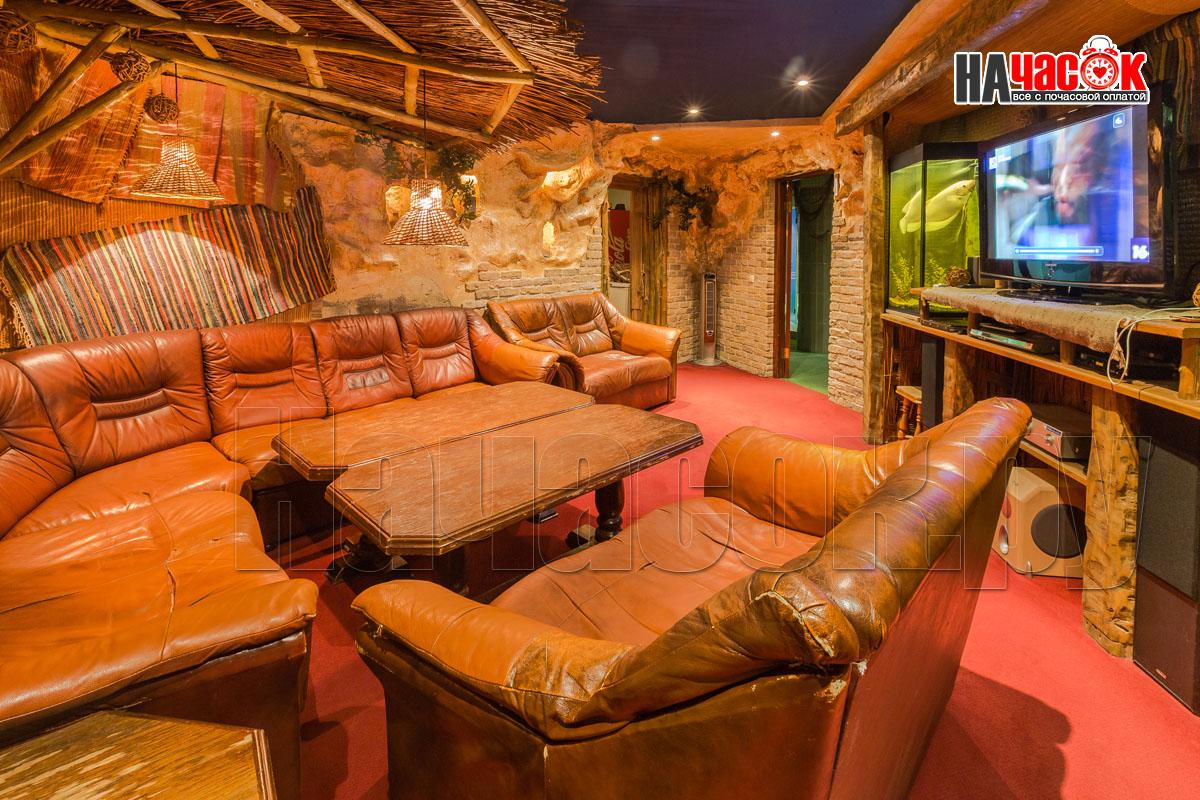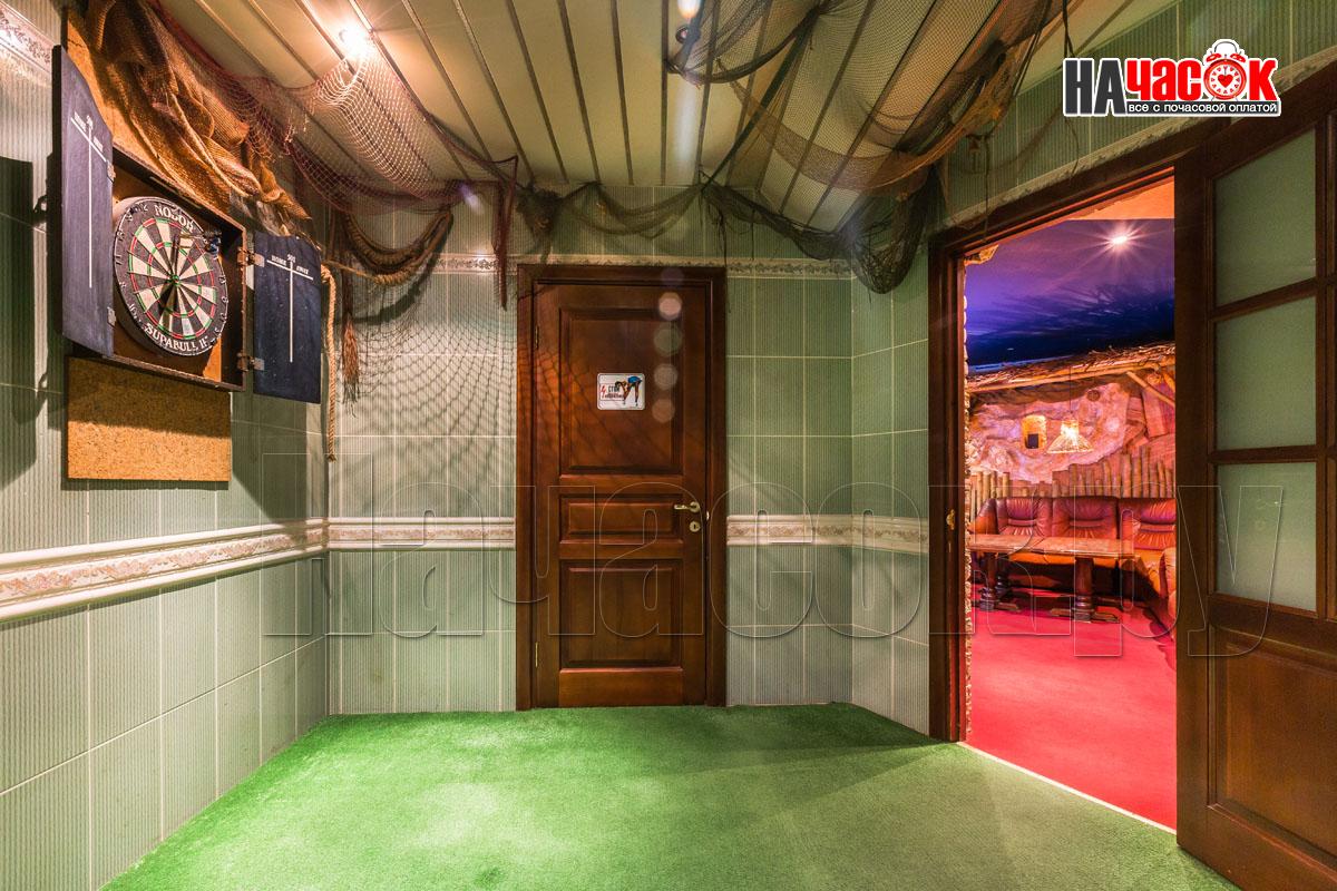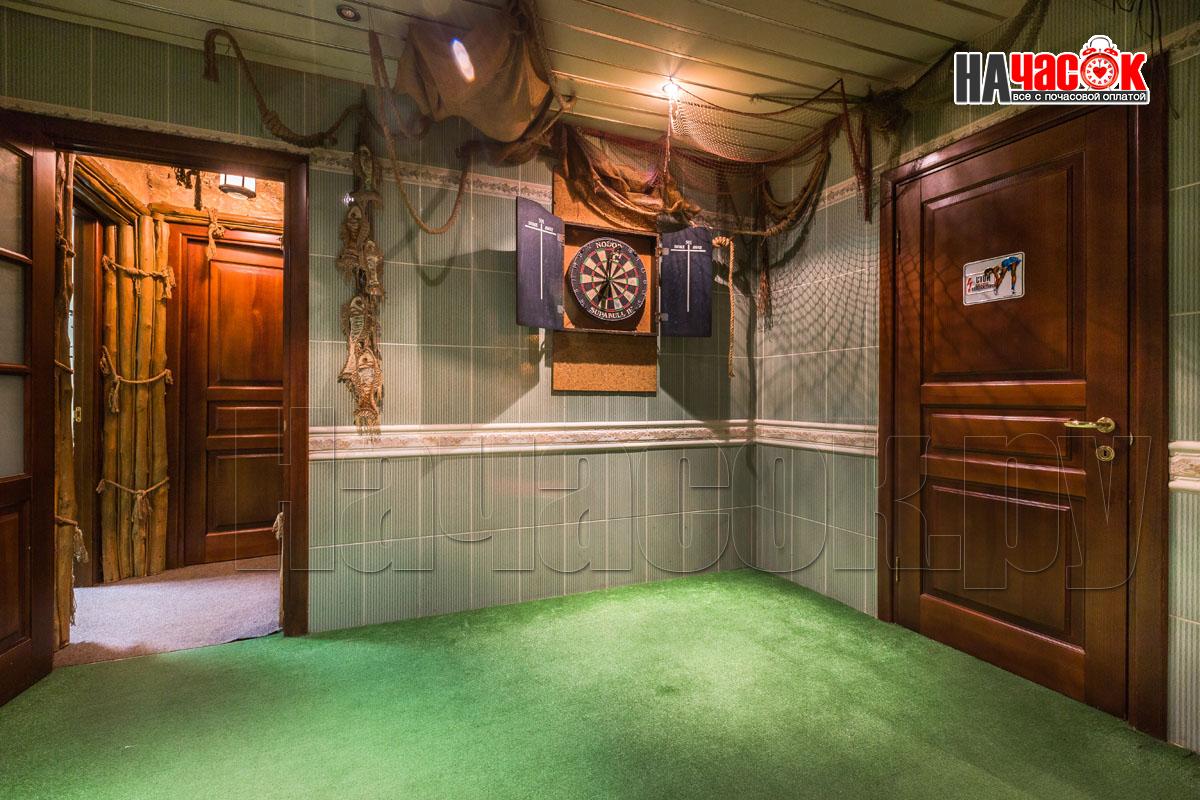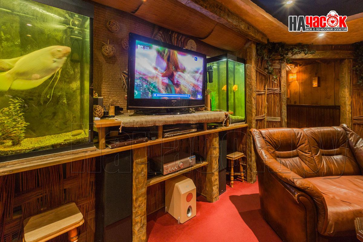 В зале установлен аквариум с рыбками. Рыба по имени ПЁТР))) наш ТАЛИСМАН порадует Вас и настроит на позитивный отдых. Над обеденной зоной нашими дизайнерами сделан потолок с виде бунгало ,что даёт преимущество проведения удачной фотосессии. Создаёт комфортную, романтическую обстановку. Для вашего развлечения имеется отдельная комната с американским бильярдом 8 фут., так же дартс и настольные игры.