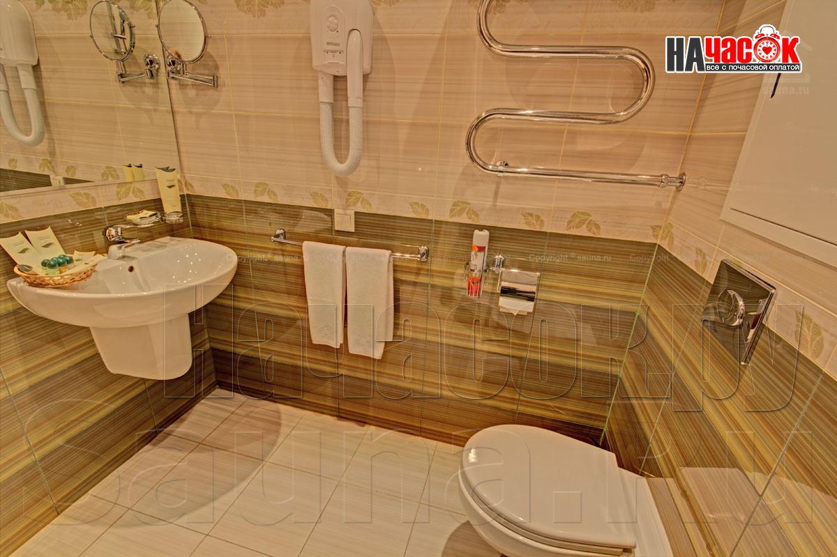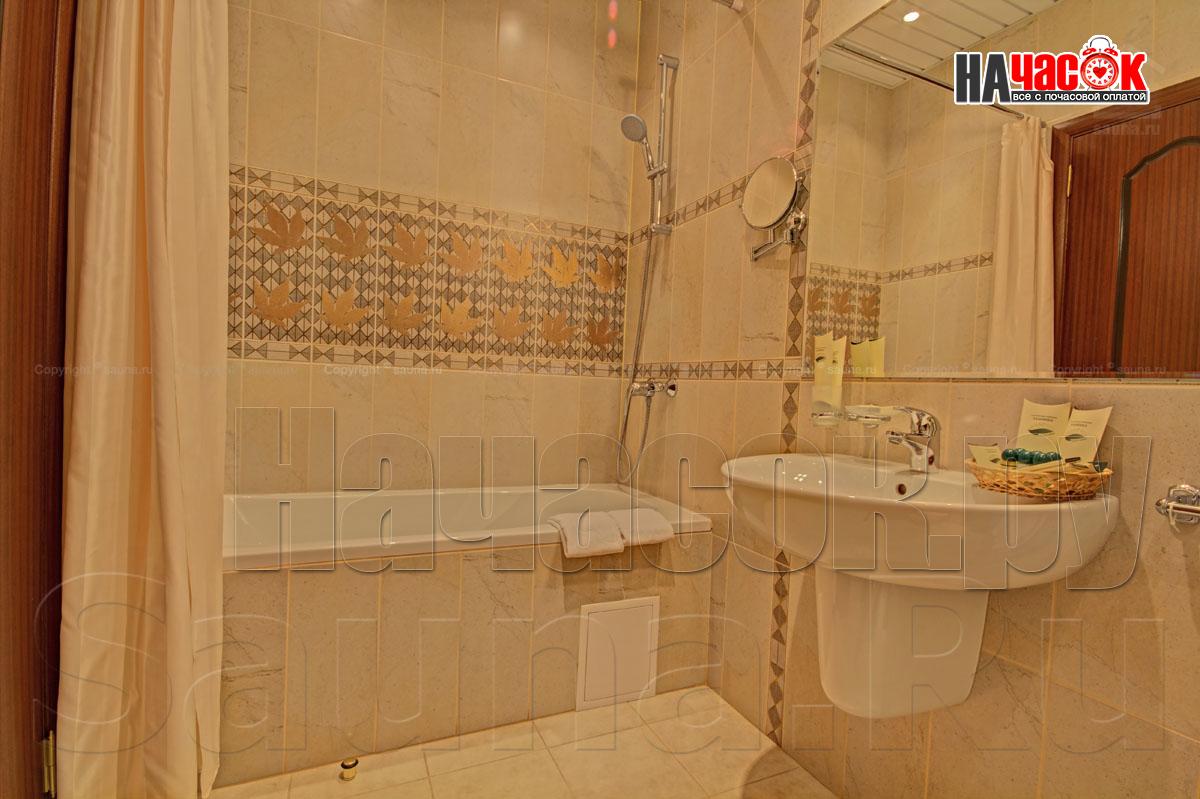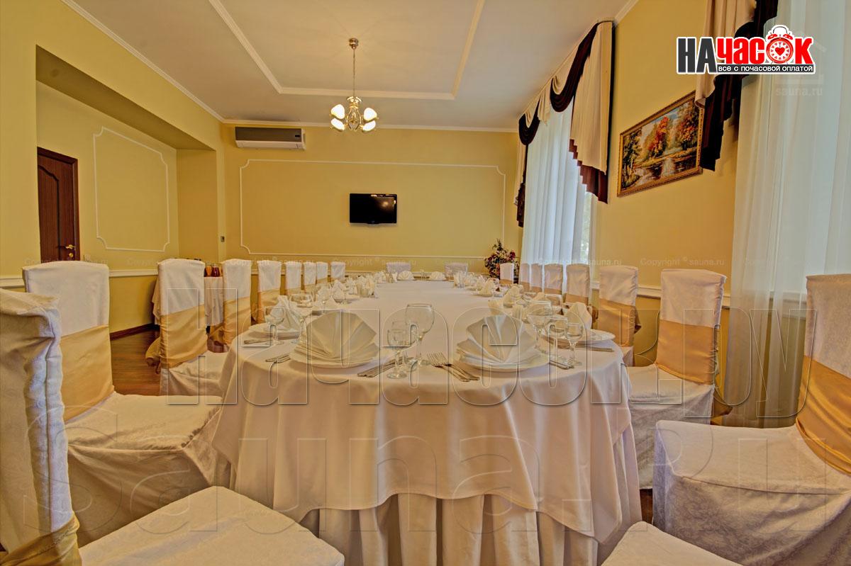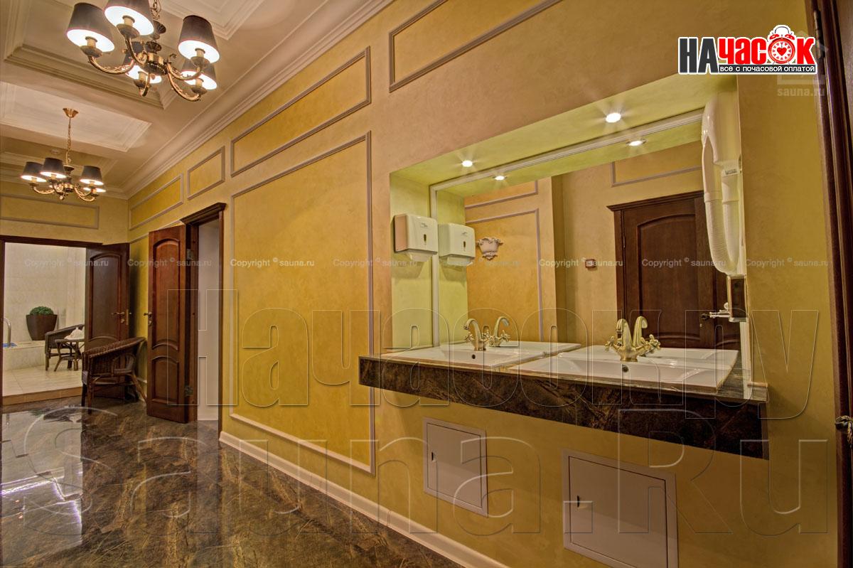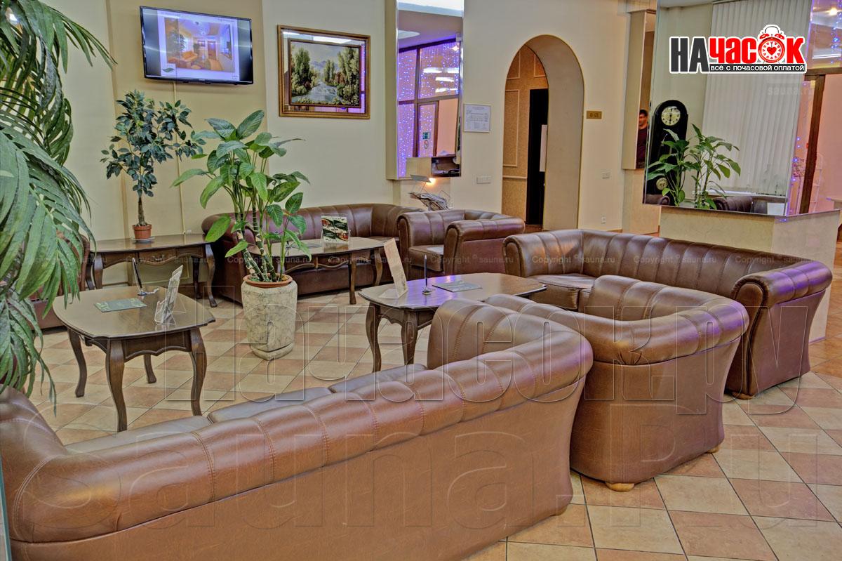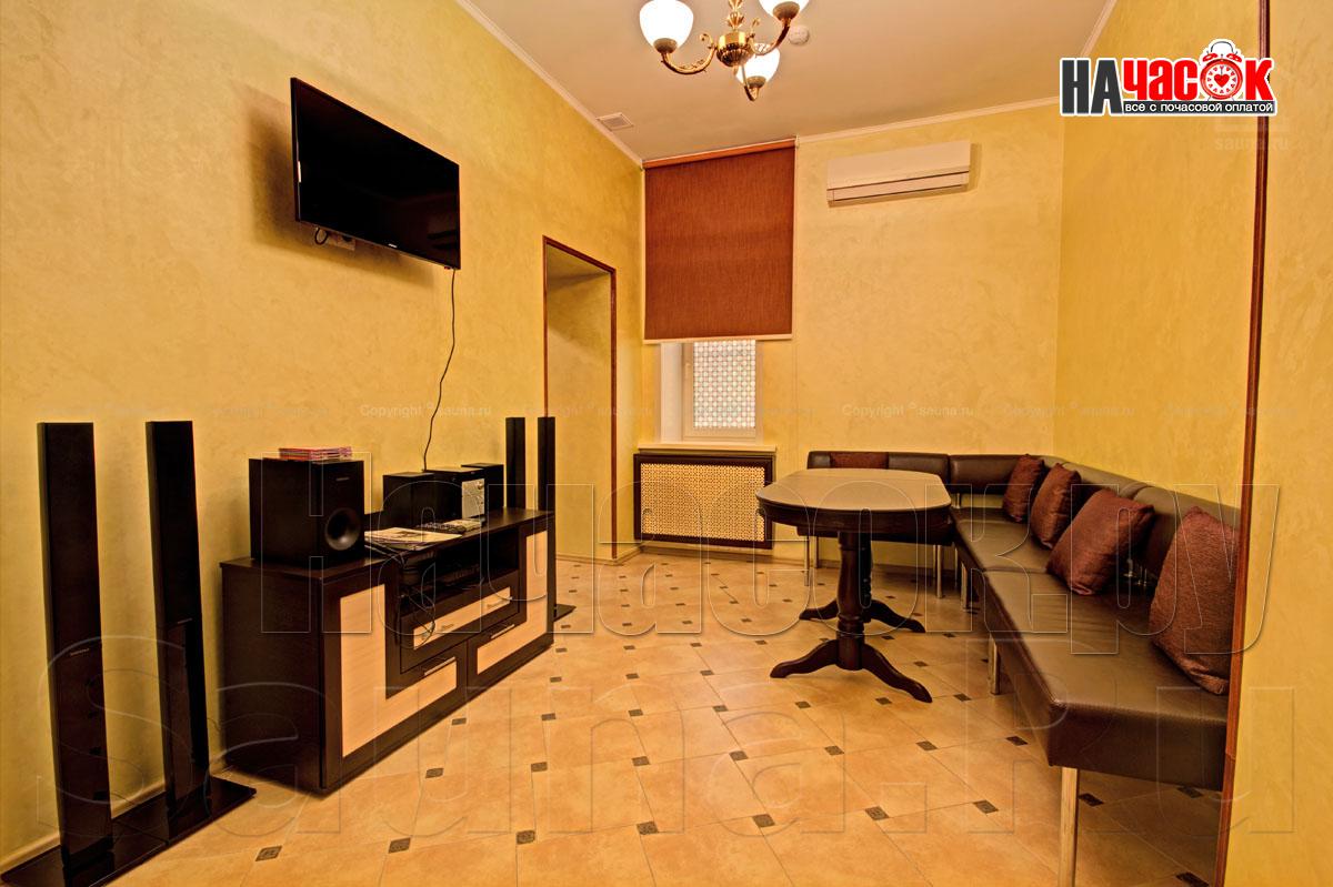 К Вашим услугам роскошный зал на 6 человек, где есть все необходимое - просторная раздевалка, отличная парилка, удобная душевая, большой плавательный бассейн (5,5 х 2,3м) и глубиной 2м, комната релаксации с караоке и аудио-видео аппаратурой. При посещении сауны предоставляются комплекты банных принадлежностей и ароматами для парной. Есть также возможность заказать вкусные блюда и напитки русской и европейской кухни из кафе.