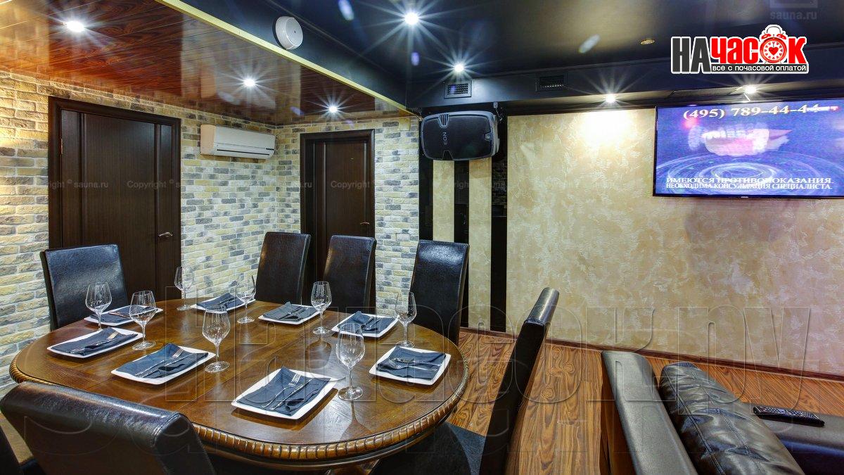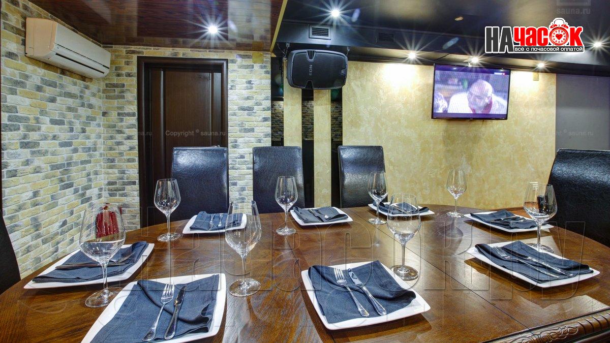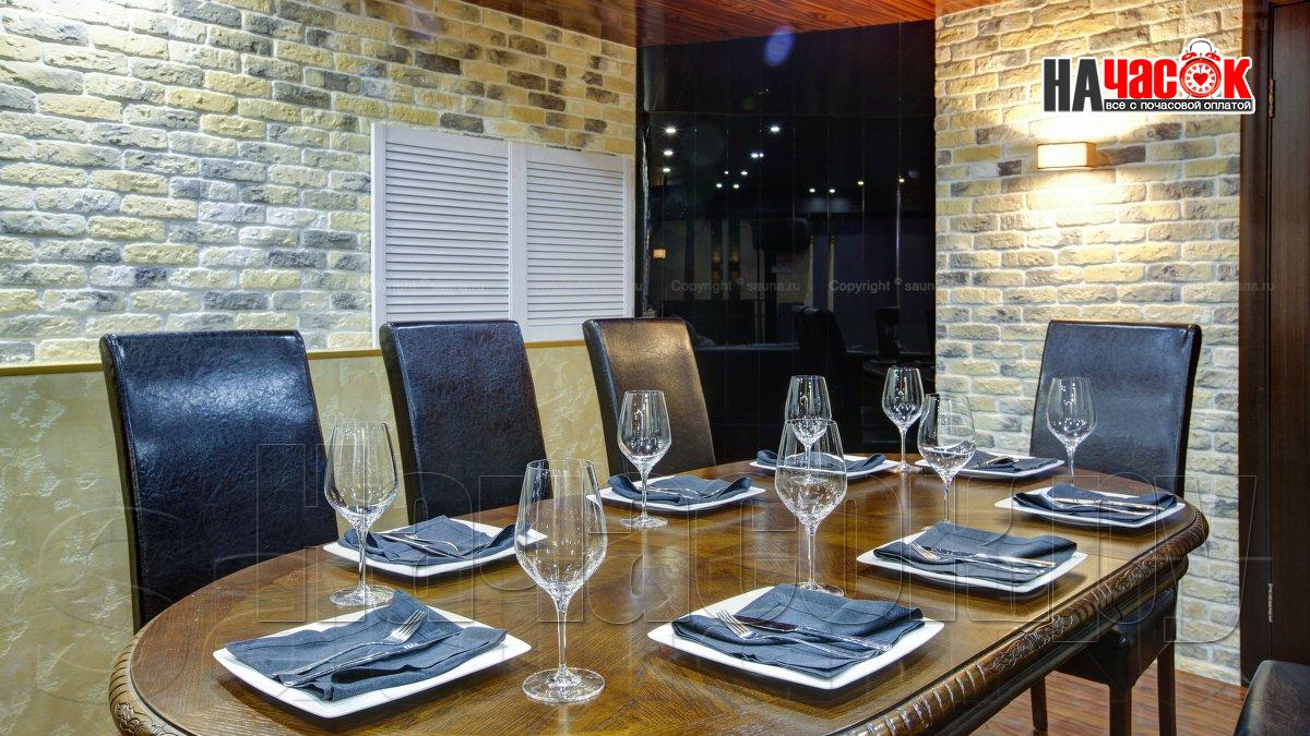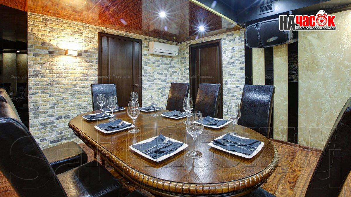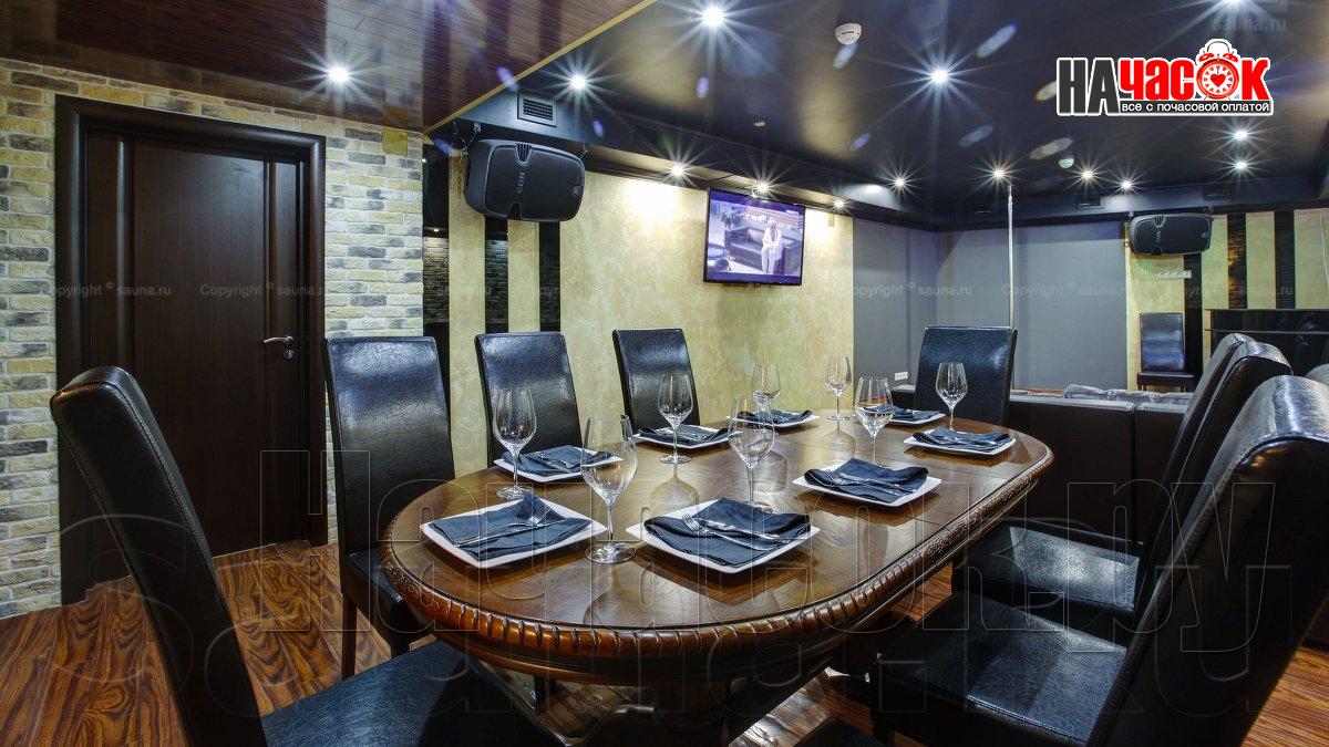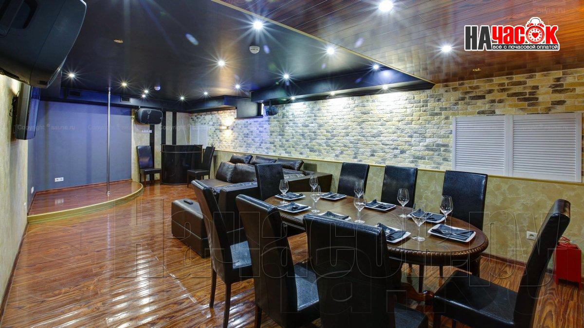 Интерьер, соответствующий всем актуальным тенденциям, удачно совмещающий классику и элегантный high tech. Для вас мягкие удобные диваны и кресла тёмной кожи, банкетная зона с большим столом. Работает кухня и бар, в меню широкий выбор блюд и напитков, кальянное меню. Зал оборудован профессиональным светом и мощным звуком, установлена караоке-система Evolution PRO – лидер на рынке профессиональных караоке-систем. По вашему желанию можно заказать шоу-представление. В вашем распоряжении финская парная на 6 человек, услуги профессионального банщика, глубокий бассейн (3.6х2 метра) с кристально чистой водой и подсветкой, несколько уютных комнат отдыха.