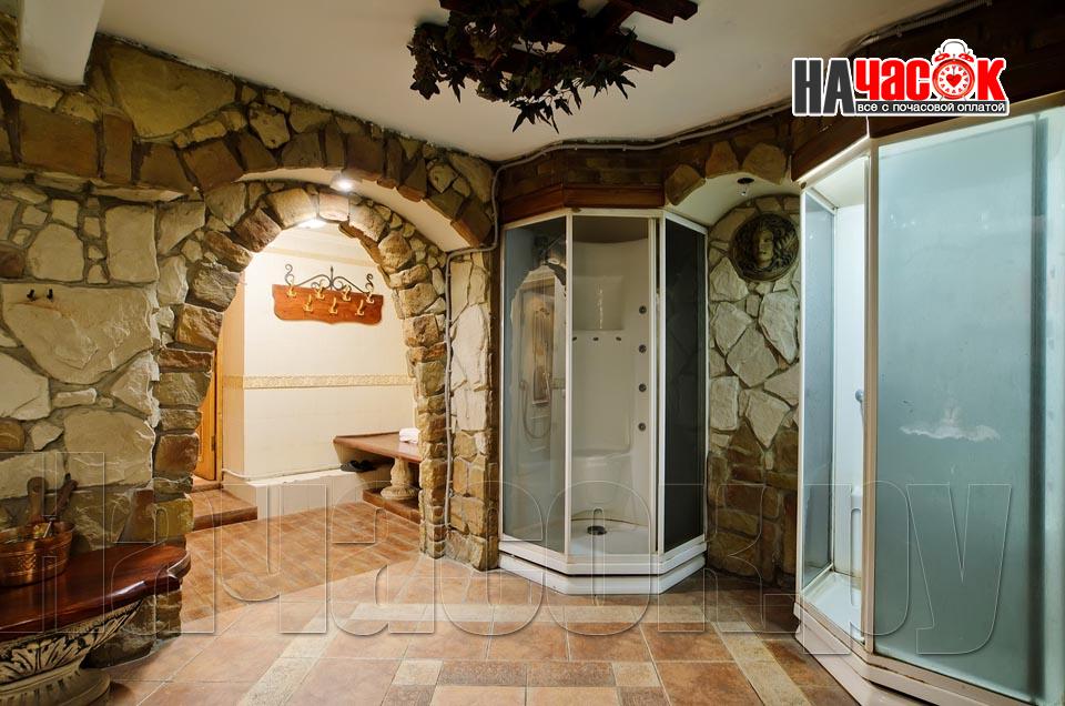 Финская парная рассчитана на одновременное пребывание в ней до 5 человек. Горячий пар способствует расслаблению тела и ума. Из организма вместе с потом выводятся шлаки и токсины, он очищается и омолаживается. После парной необходимо хорошенько охладиться, это является прекрасной зарядкой для иммунной системы человека. Для этих целей отлично подойдет бассейн с прохладной водой. Бассейн имеет размер 3x4 метра, оборудован фонтаном и гидромассажем.
