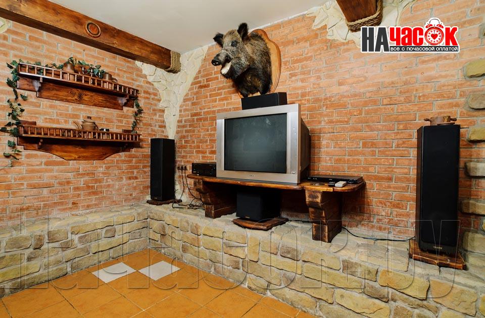 Зал оснащен современной музыкальной и видеоаппаратурой. Здесь есть домашний кинотеатр и система караоке.