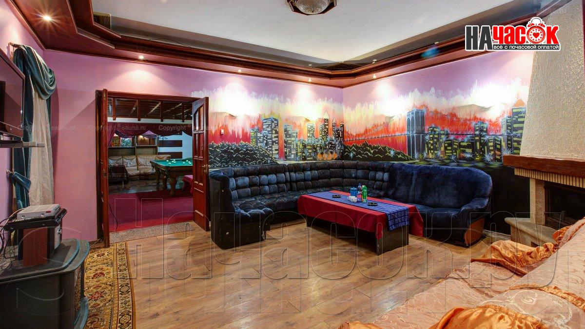 Бильярдная – русский 10 футовый стол, массажное кресло и диван. Гостиная – мягкая мебель, стол, камин, караоке, телевизор со спутниковым телевидением, музыкальный центр. Комната отдыха – Кровать 180*200, зеркало, столик. Бассейн – бассейн 5*3, 2 душевые, массажный стол.