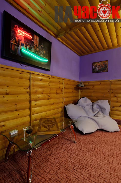 В гостиной: мягкий диван, телевизор, холодильник, бильярд, сплит-система, стол.