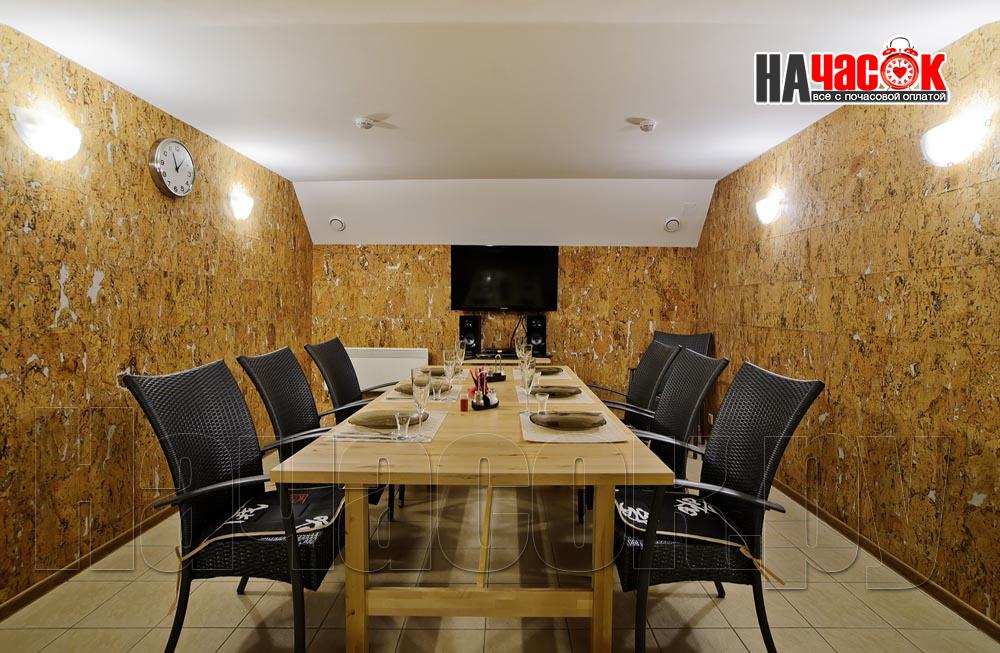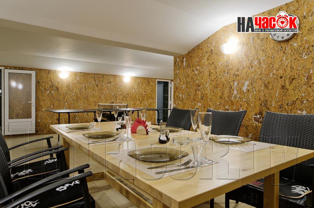 Для наших посетителей в заведении круглосуточно работает кухня и бар, где Вам будут предложены блюда русской и европейской кухни, приготовленные по-домашнему вкусно и с душой. Мы красиво сервируем ваш праздничный стол, который надолго оставит у вас и ваших гостей самые незабываемые и приятные впечатления. Если же Вам удобнее принести продукты, напитки и посуду с собой, за это не взимается дополнительная плата, как в большинстве подобных заведений.