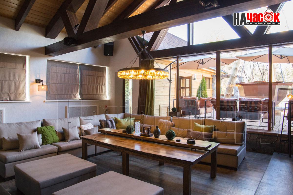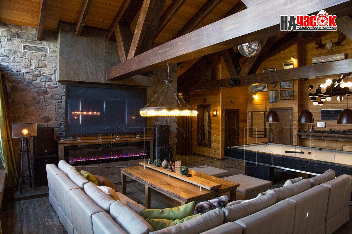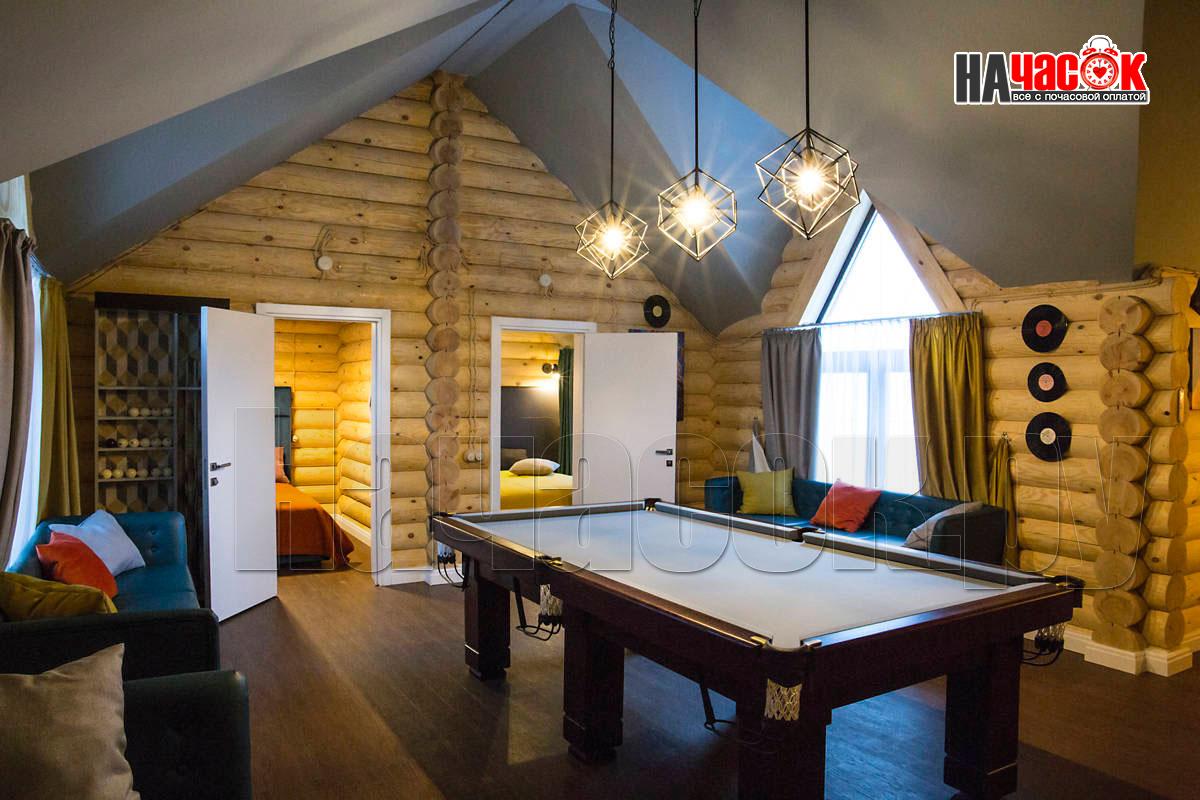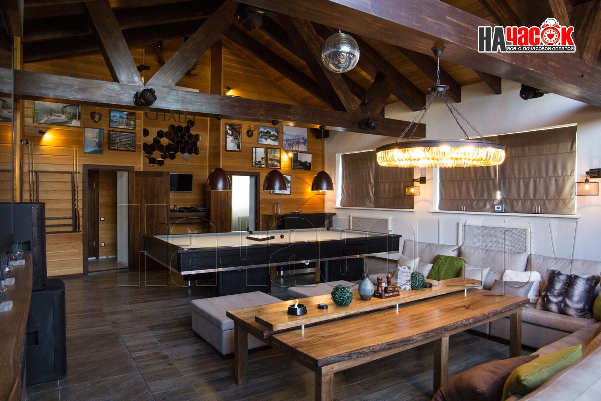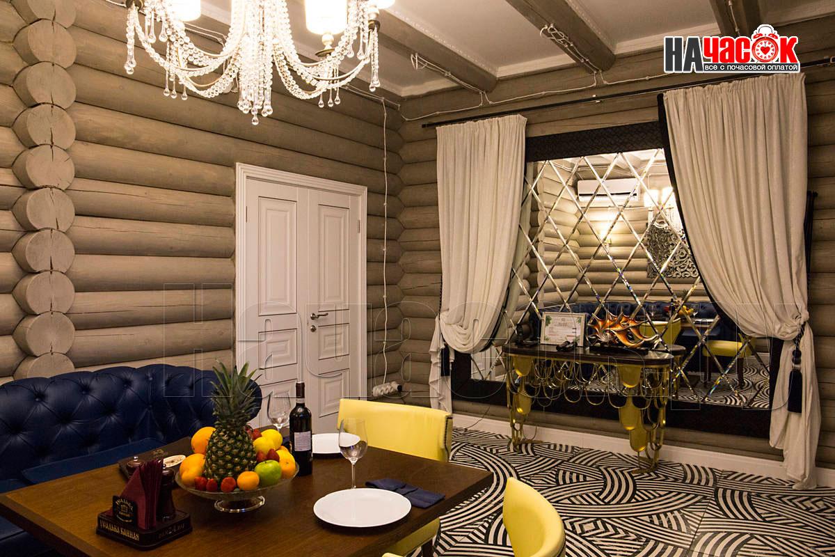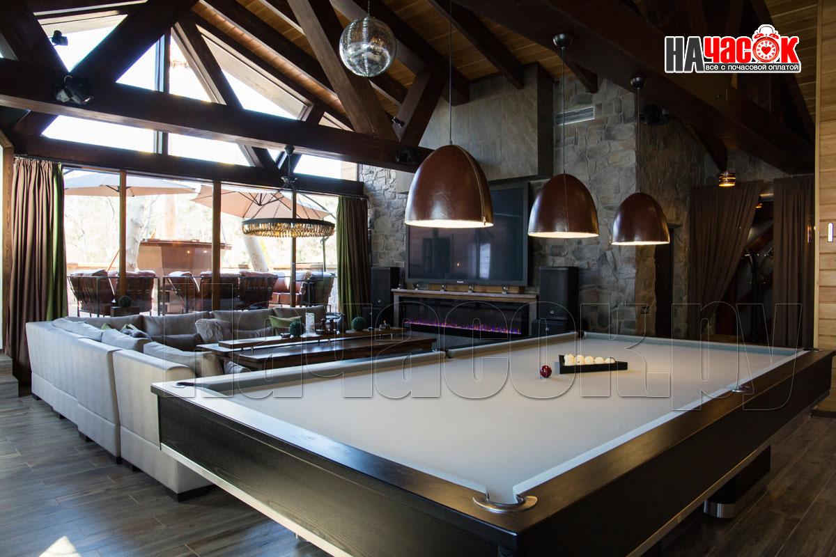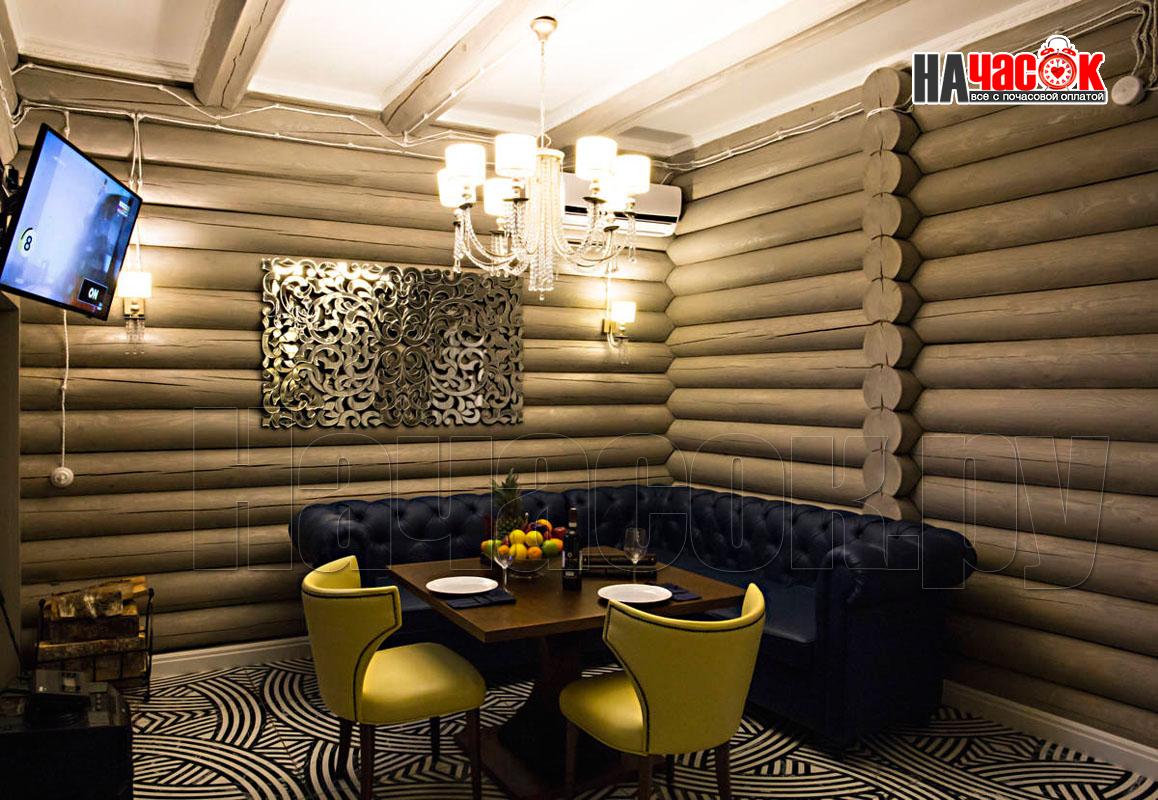 Оформленный в современном стиле, в светло-голубой гамме. Просторная релакс зона с диваном и пуфами, зона с бильярдным столом, ТВ, профессиональное караоке, 2 комнаты отдыха, парная. |