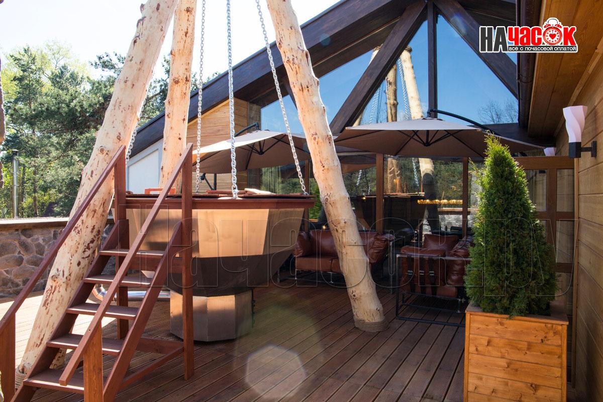 Оформленный в соответствии с архитектурным стилем средневекового замка. Оказавшись в его апартаментах, Вы сможете почувствовать на себе атмосферу времен правления королей. Замок универсален и подходит не только для веселого времяпровождения в компании друзей, но и для организации романтических вечеров. На площадке установлена купель для продолжения релаксационных процедур после процедуры парения.«Рыцарский» сруб может стать не только идеальным вариантом бани на двоих, но и прекрасным местом отдыха для компании до 7 человек Бассейн, парная, купель, ТВ, музыкальный центр, профессиональное караоке, бильярд. |