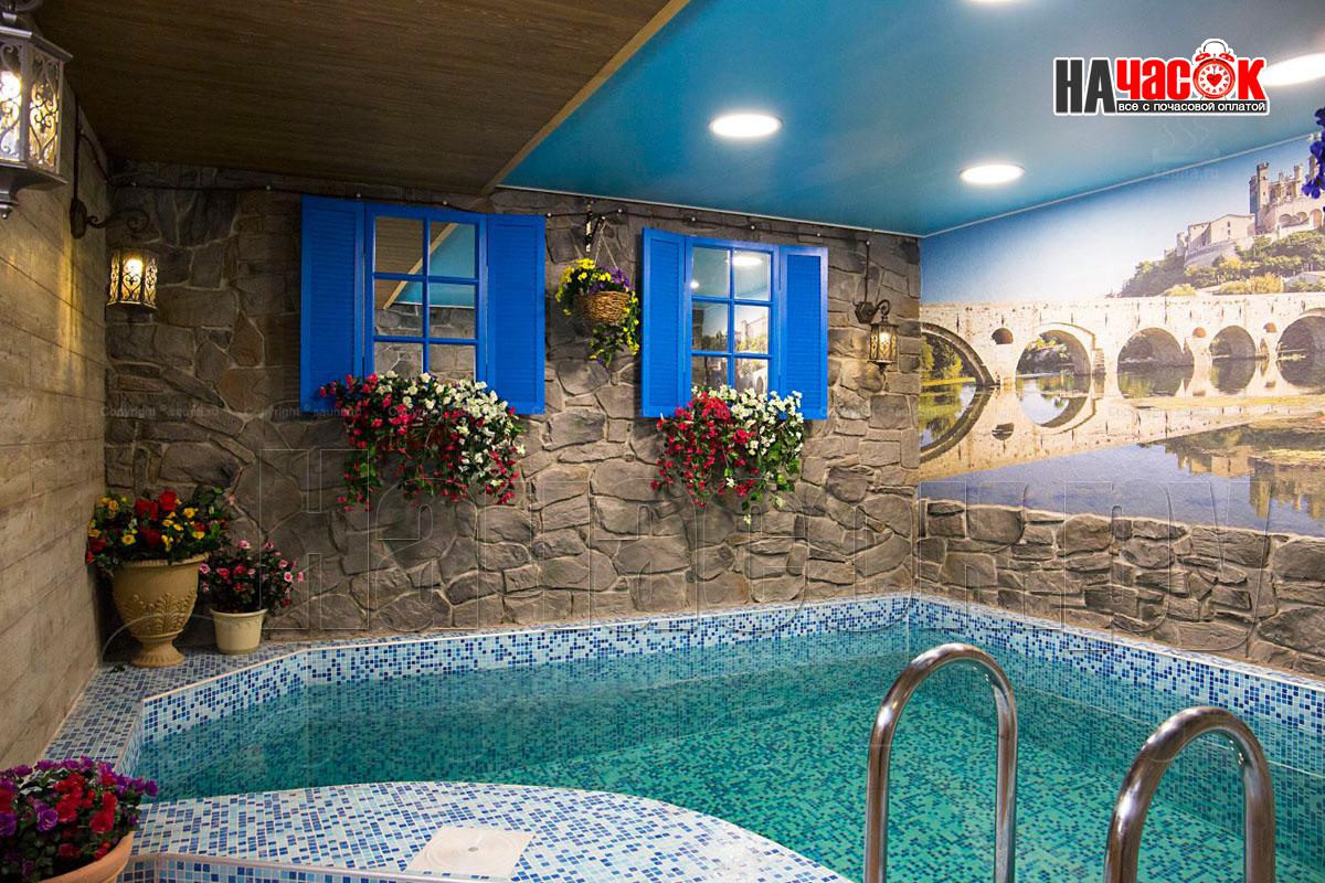 Оформленный в ретро стилистике, в стиле "Прованс"- очарование светлой, доброй старины и простой роскоши. Помещение бассейна напоминает внутренний дворик дома, откуда открывается вид на старинный замок на берегу реки. 2 комнаты отдыха, парилка, бассейн, ТВ, профессиональное караоке. |